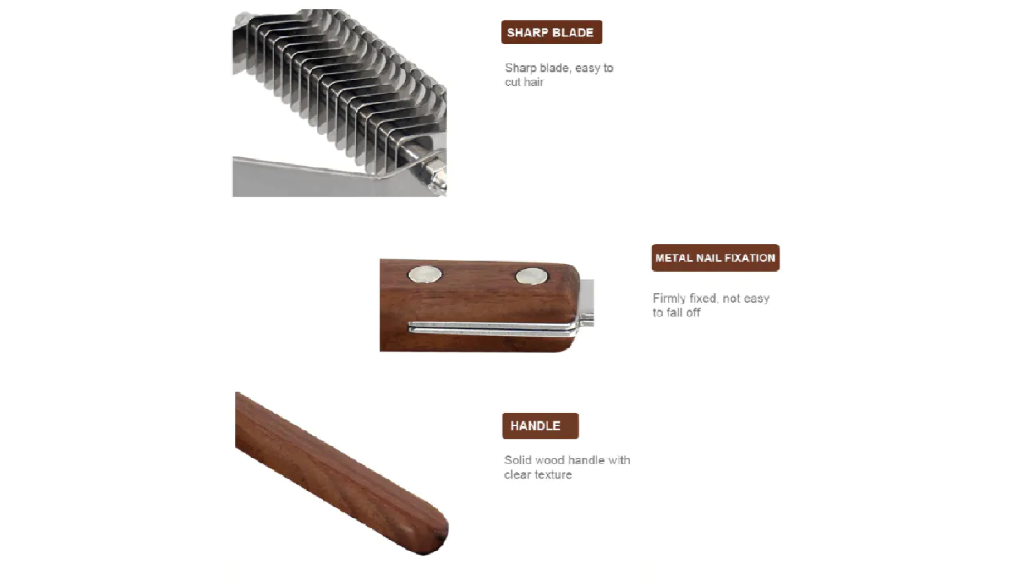 Take your pet grooming routine to the next level with the Maximilian Dematting/Deshedding Comb & Rake w/ Wooden Handle. This tool effortlessly removes tangles and loose fur, making it a must-have for any pet owner. It also helps reduce shedding, leaving behind a healthier coat that your pet will love to flaunt.