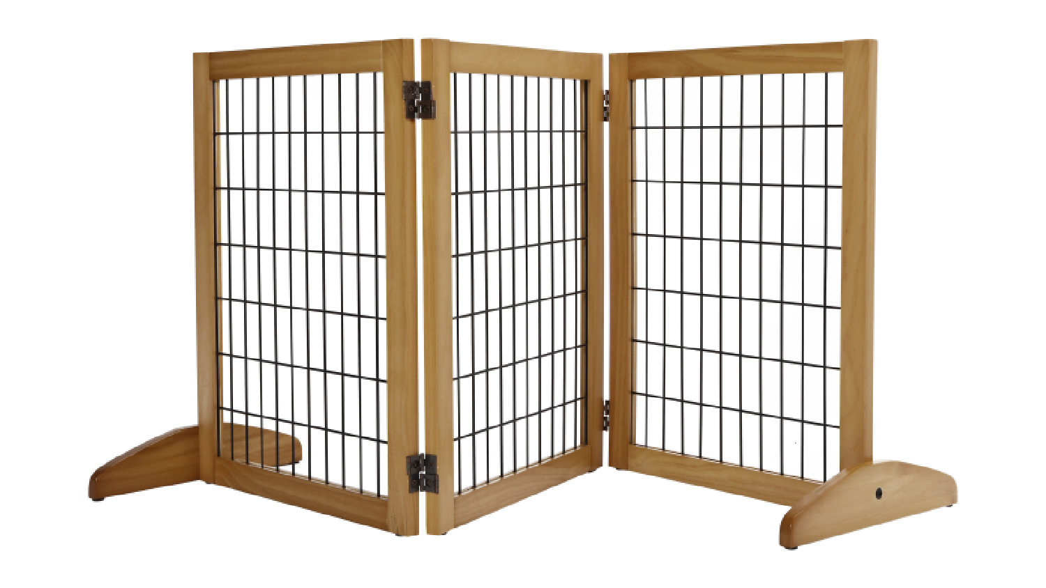 Charlie's 3 Panel Freestanding Pinewood/Metal Pet Gate