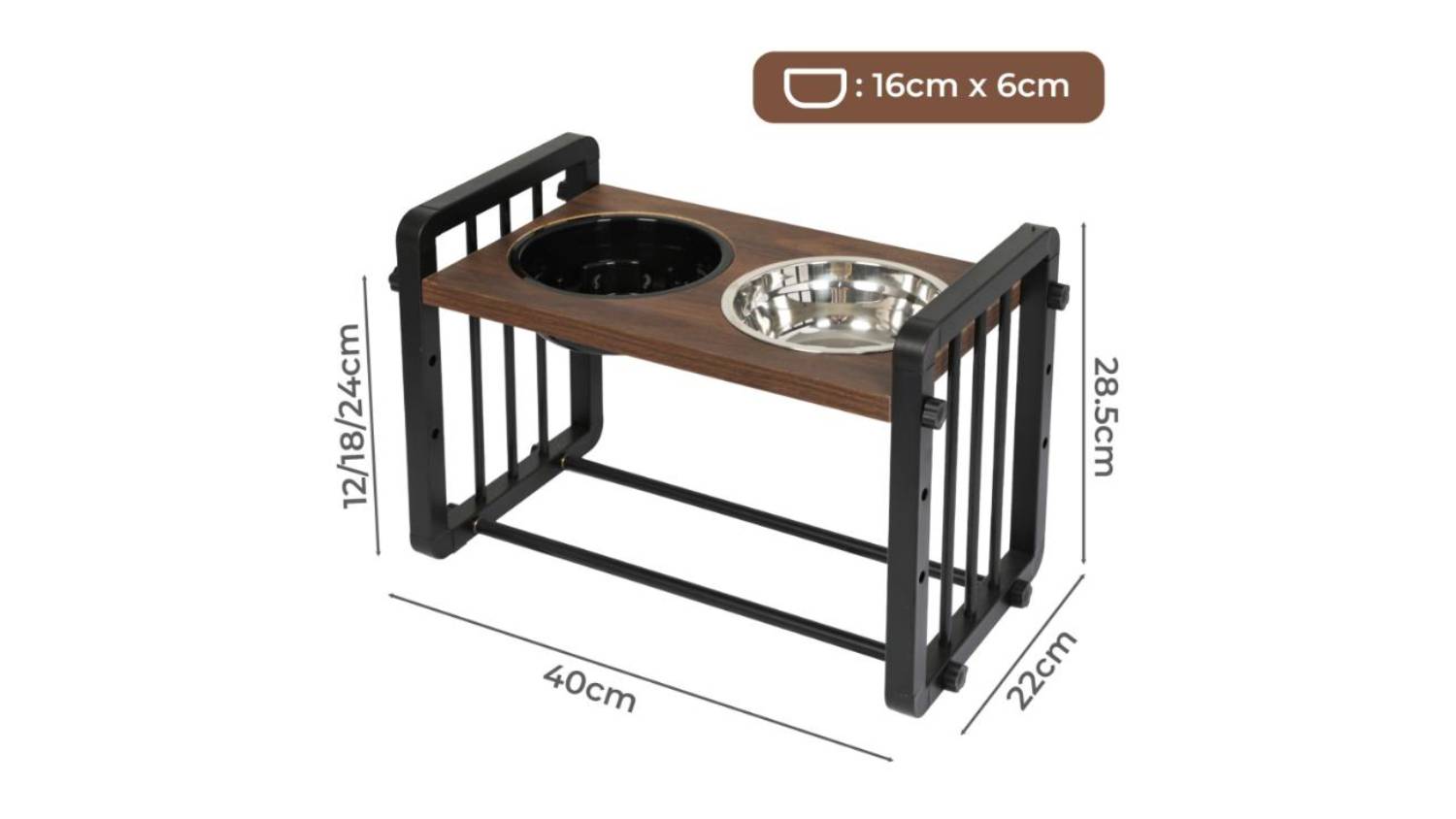 PaWz Adjustable Elevated Pet Feeder Stand with Slow Feeder Bowl, Water Dish