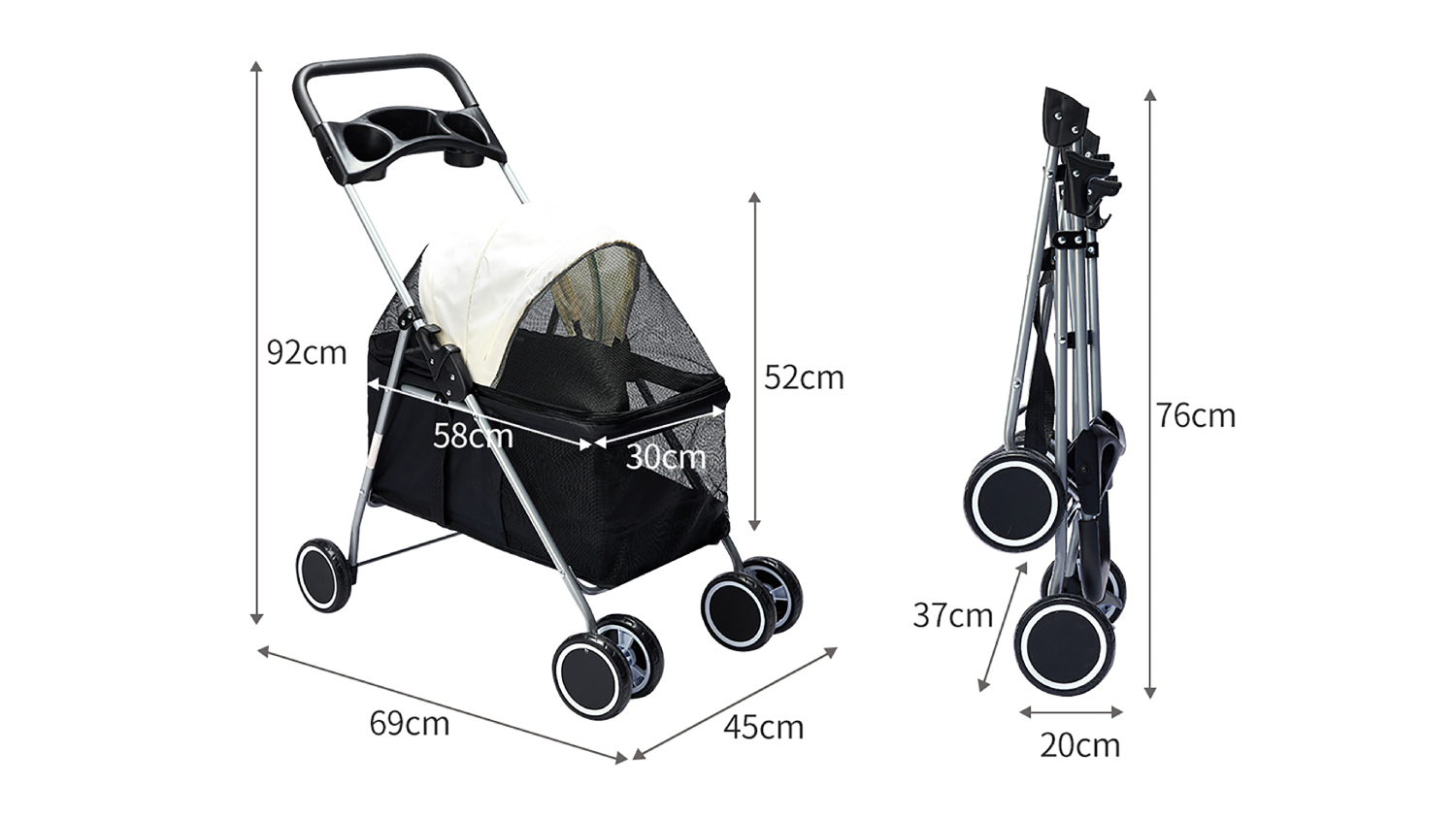 Take your furry friend on fun adventures with the PaWz Compact Covered Folding Pet Stroller! This stylish and practical pram offers a comfortable ride for your pet, with a reclining seat, adjustable canopy, and shock-absorbing wheels. It's easy to assemble, fold, and transport, making it perfect for on-the-go use.