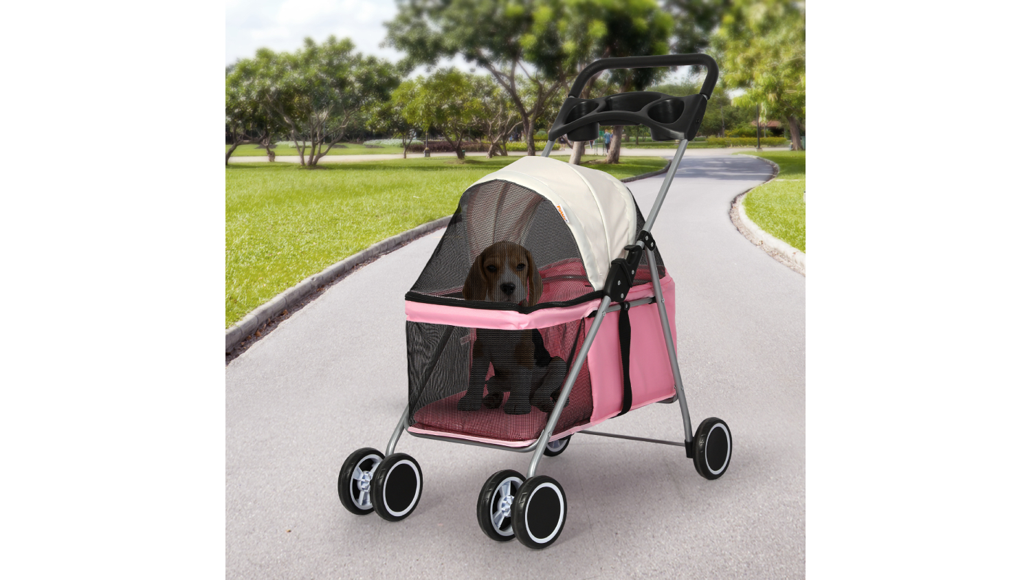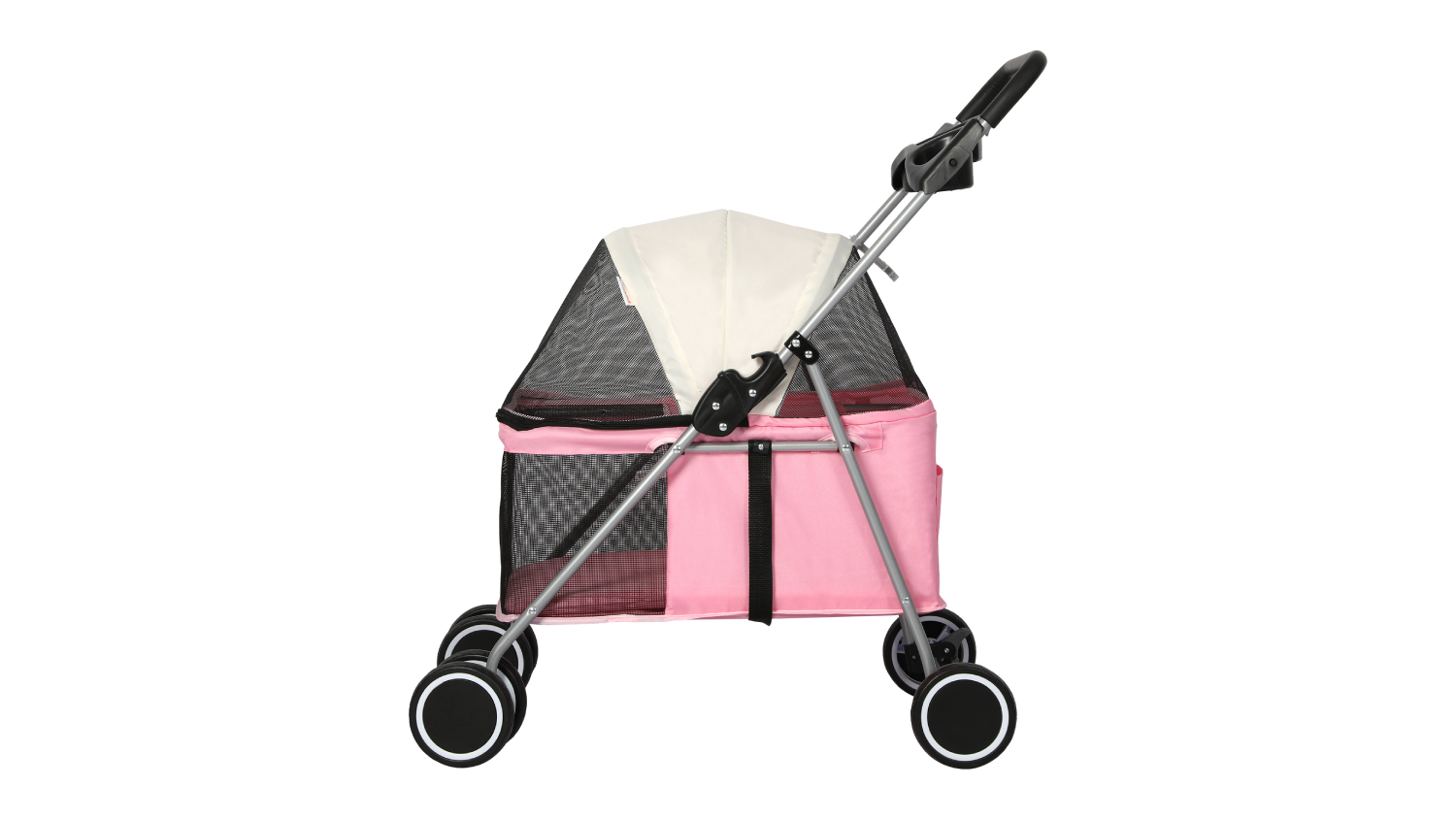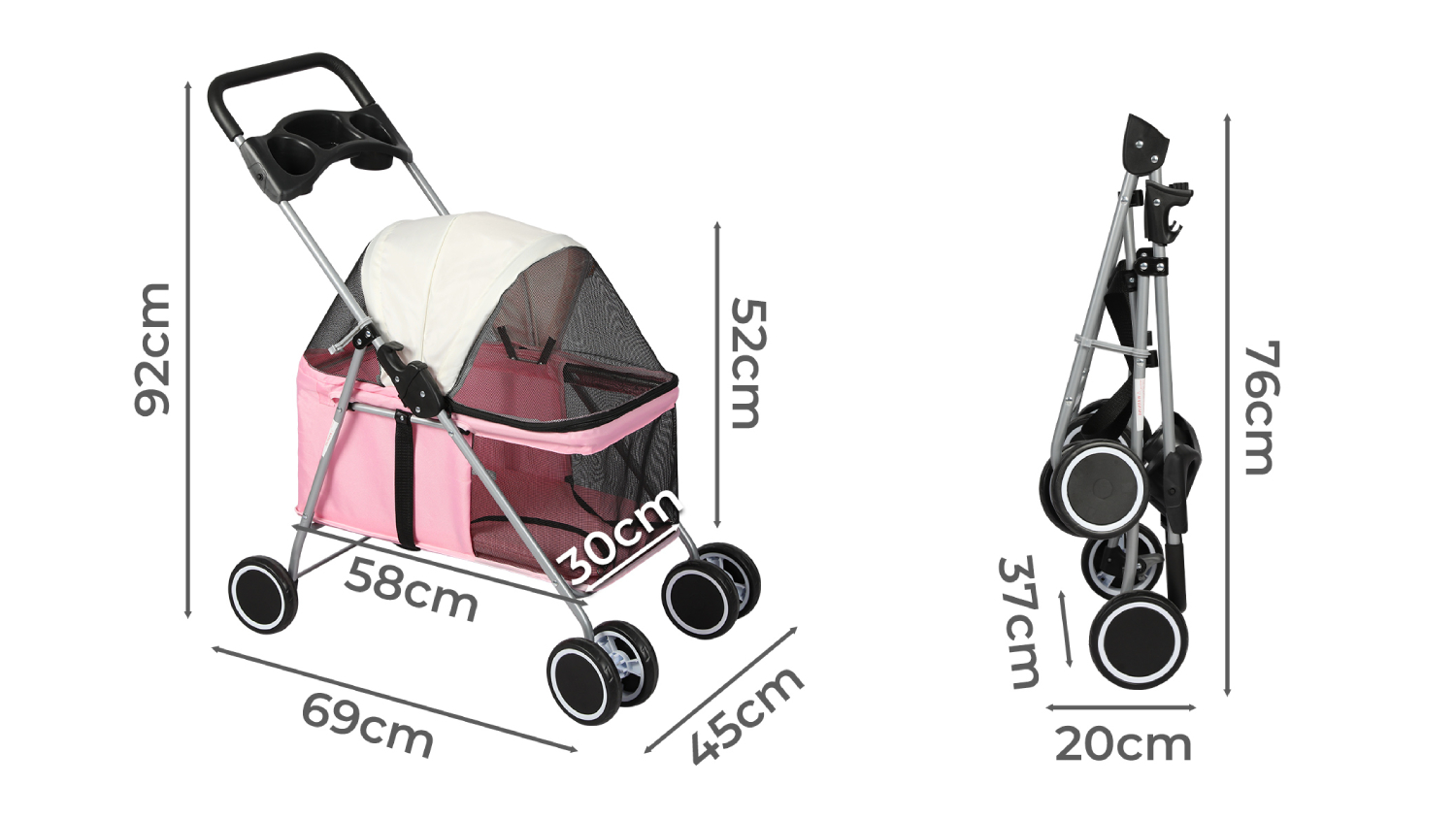 PaWz Folding Domed Pet Stroller with Drink Holder - Pink