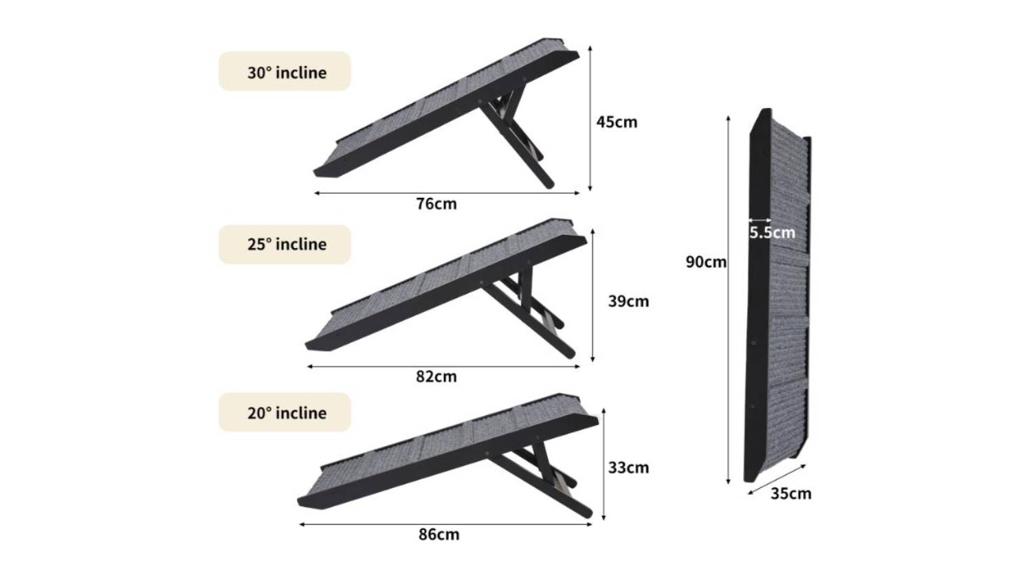 Make life easier for your pet with the PaWz Folding Pet Ramp. Perfect for small and elderly dogs, this ramp features three adjustable height settings to create a gentler angle for climbing. Whether for the car, couch, or bed, this tool ensures accessibility for your precious fur baby. It’s also lightweight and folds flat for convenient storage.