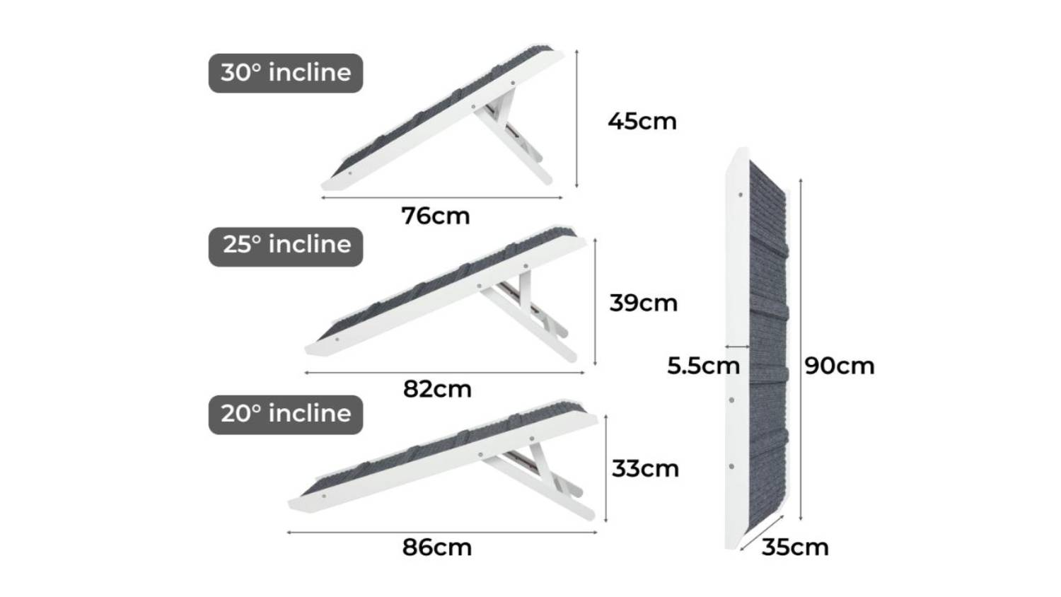 Make life easier for your pet with the PaWz Folding Pet Ramp! Perfect for small and elderly dogs, this ramp features three adjustable height settings to create a gentler angle for climbing. Whether for the car, couch, or bed, this tool ensures accessibility for your precious fur baby. It’s also lightweight and folds flat for convenient storage.