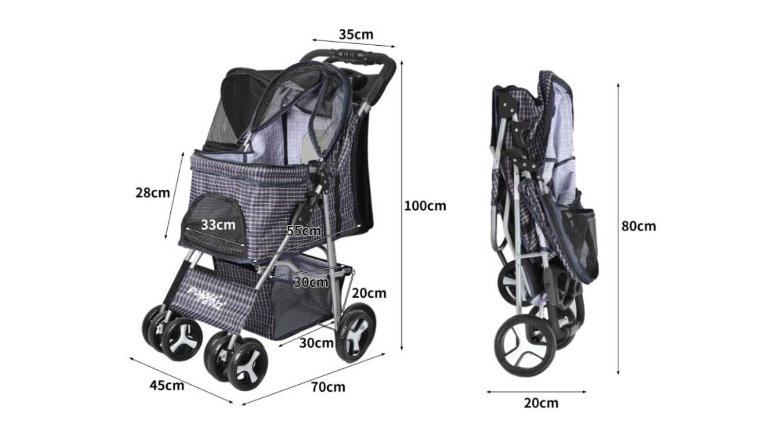The PaWz Large Quad-Wheel Pet Stroller is your go-to solution for outings with your fur baby. Whether your pet is too small, older, or simply prefers a cosy ride, this stroller has you covered. It offers easy one-step folding, a smooth 360° front wheel, waterproof fabric, drink holder, and a plush removable cushion for the ultimate convenience and comfort.