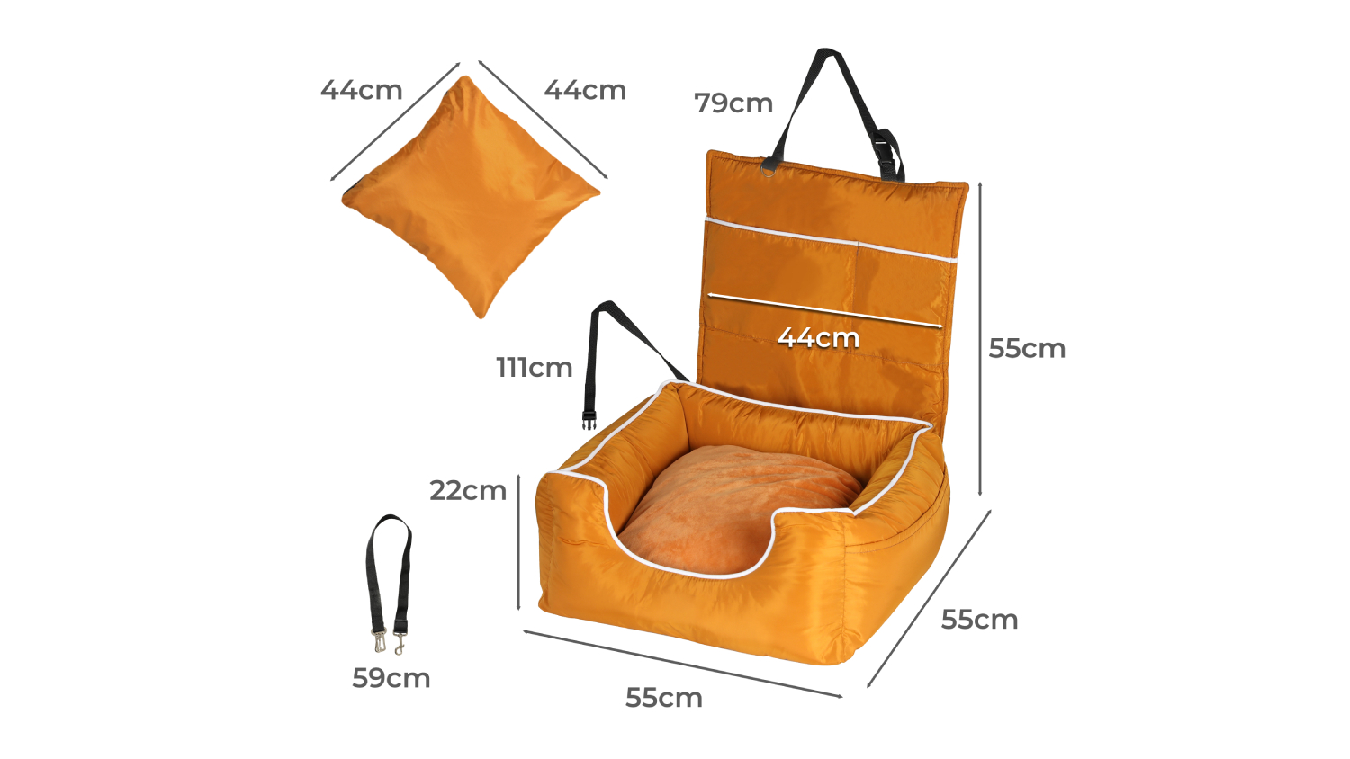 PaWz Pet Car Booster Seat with Safety Harness - Velvet Orange