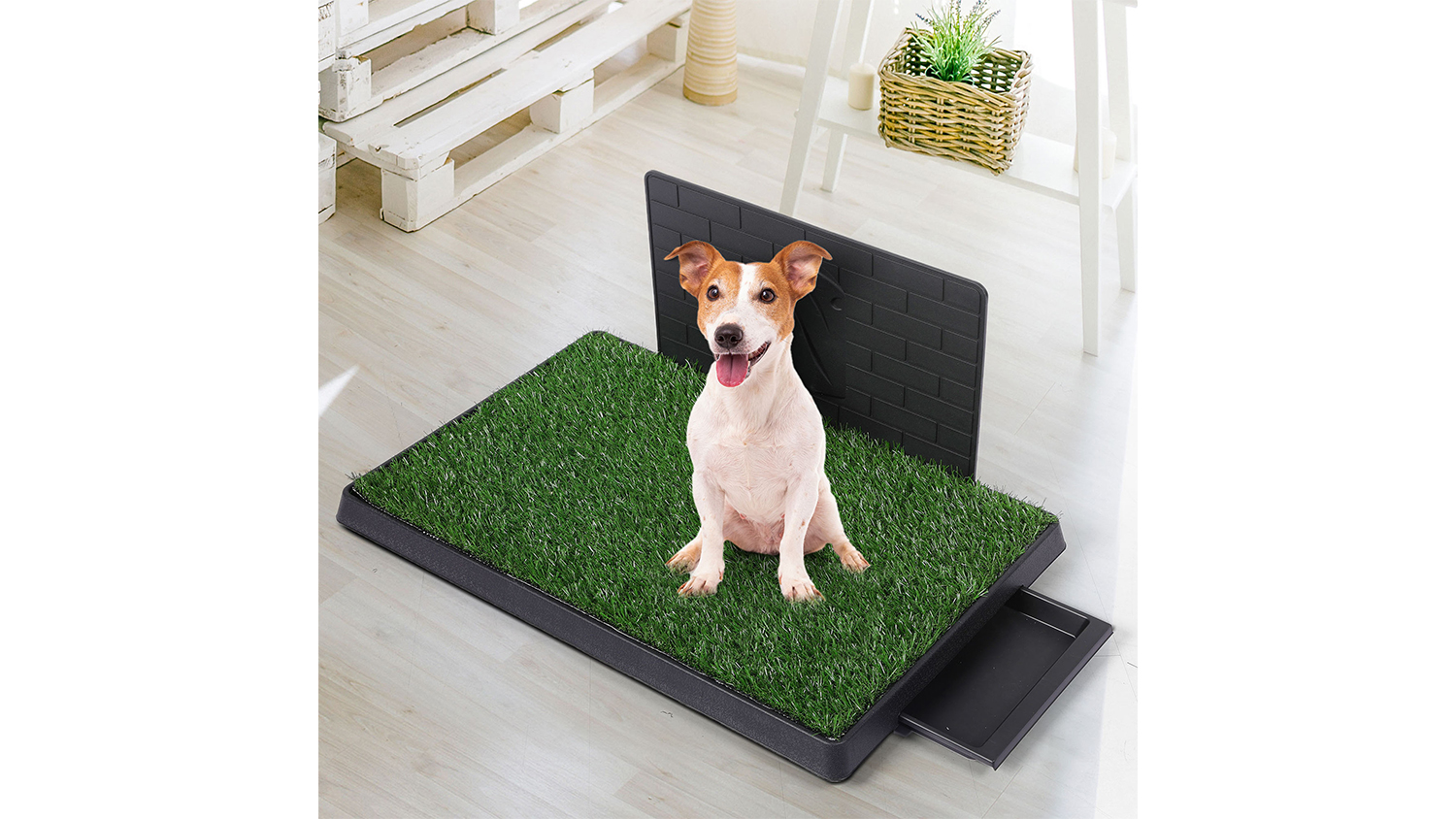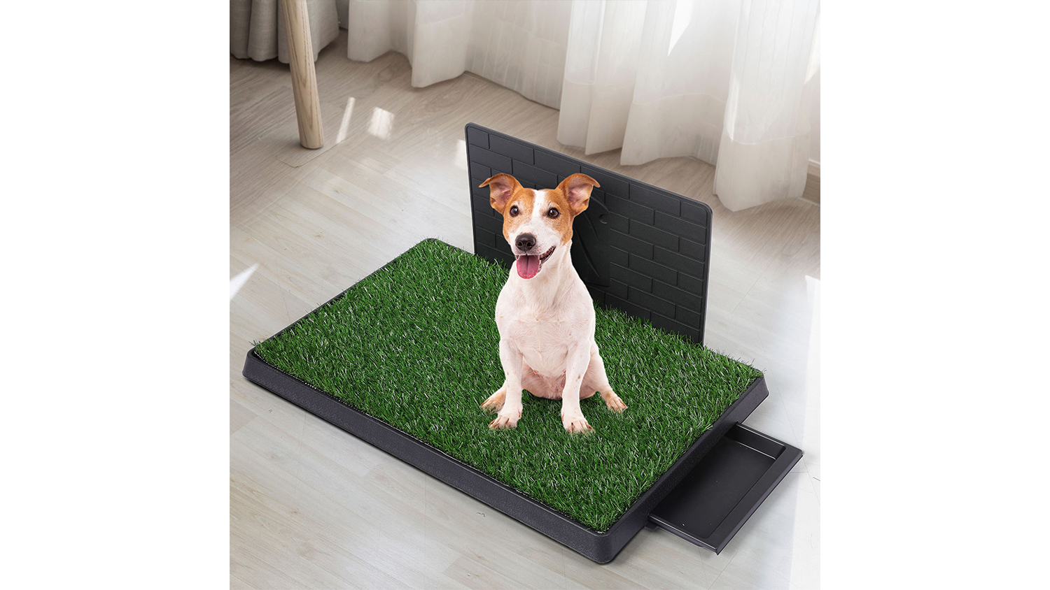 PaWz Pet Toilet Training Pad with Splash Wall, Fake Grass, Sliding Tray