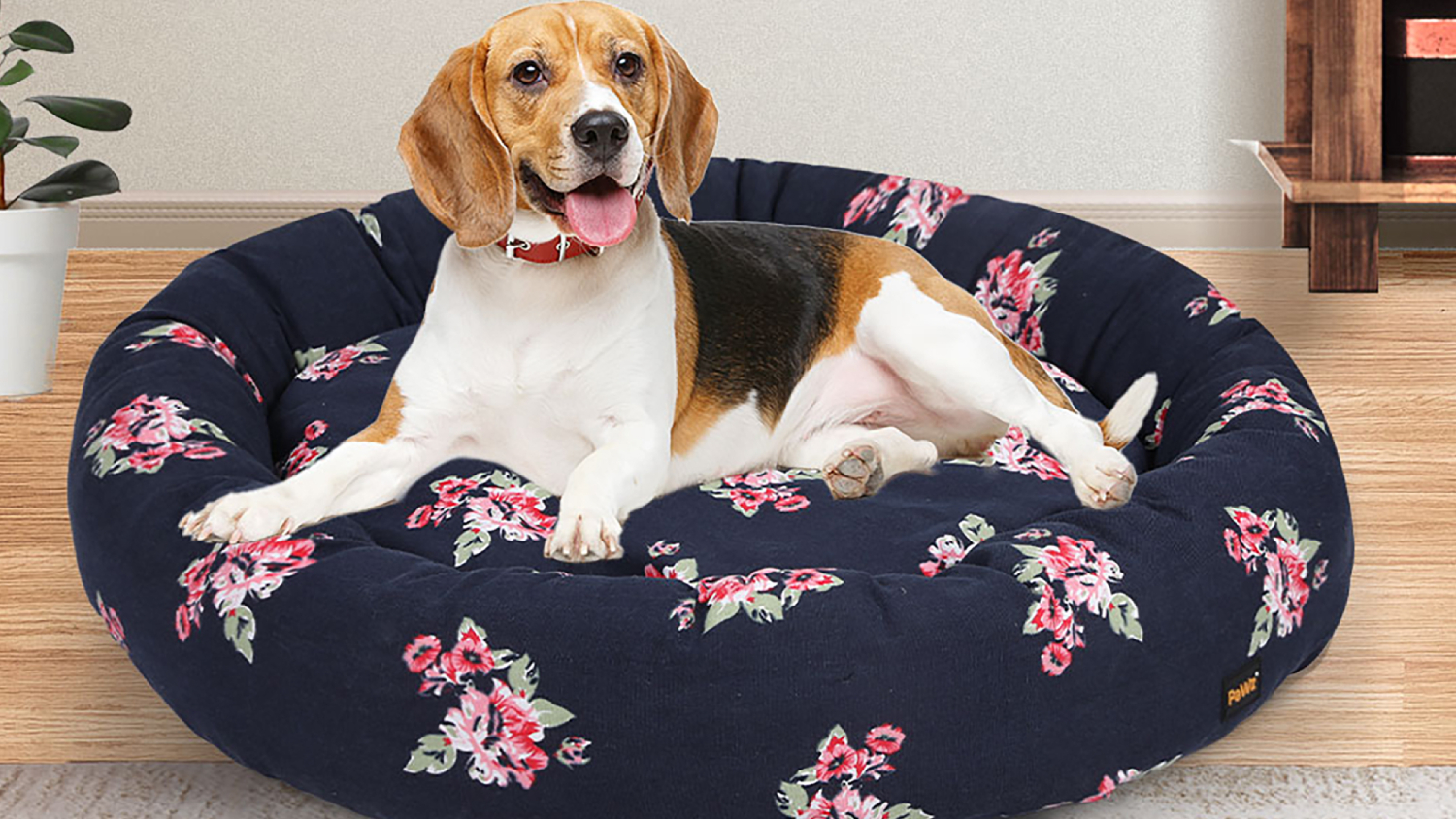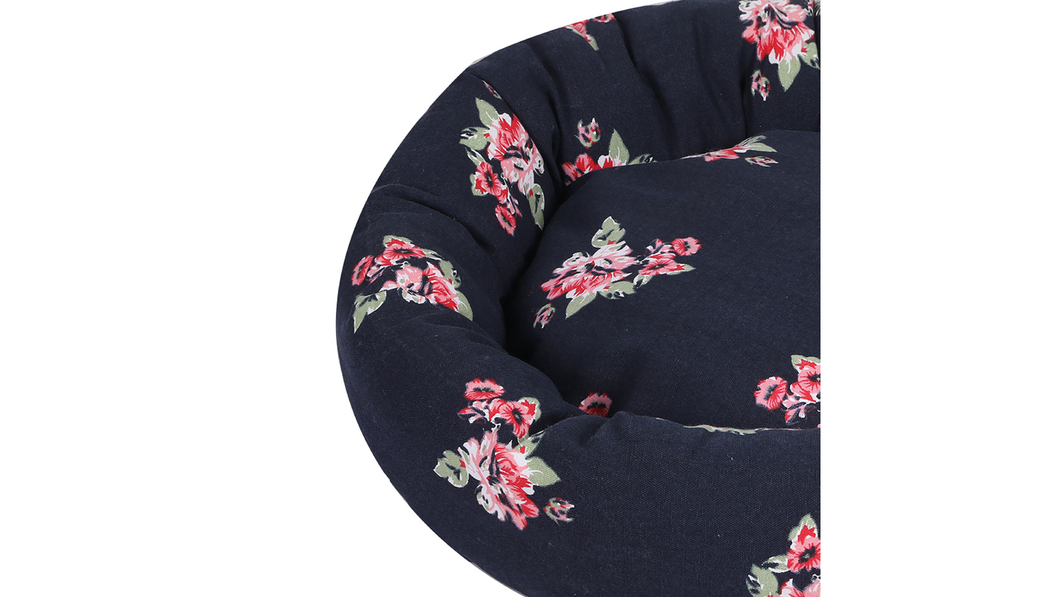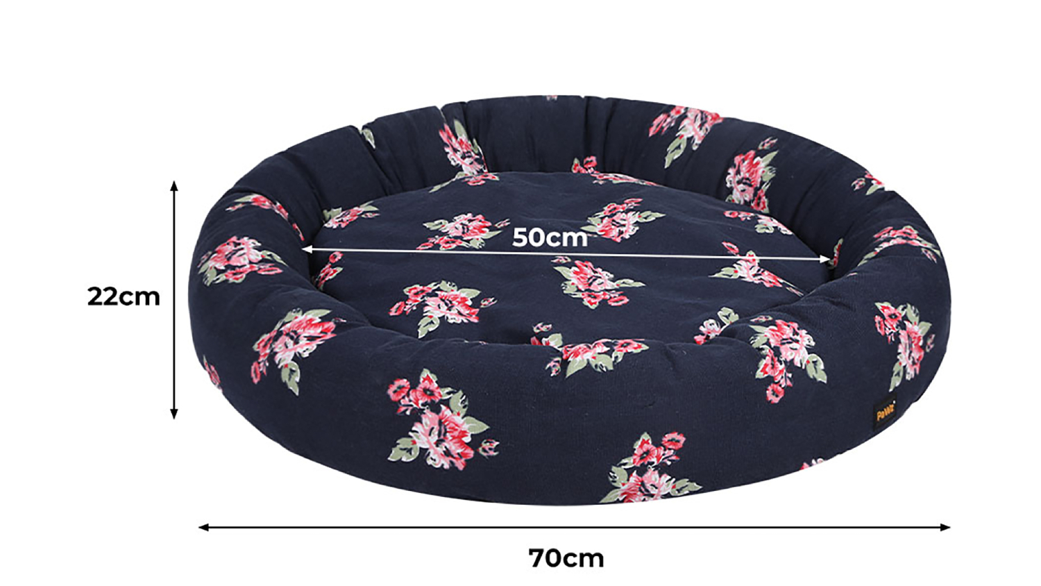 PaWz Plush Donut Dog Bed 70 x 22cm - Navy/Floral Pattern