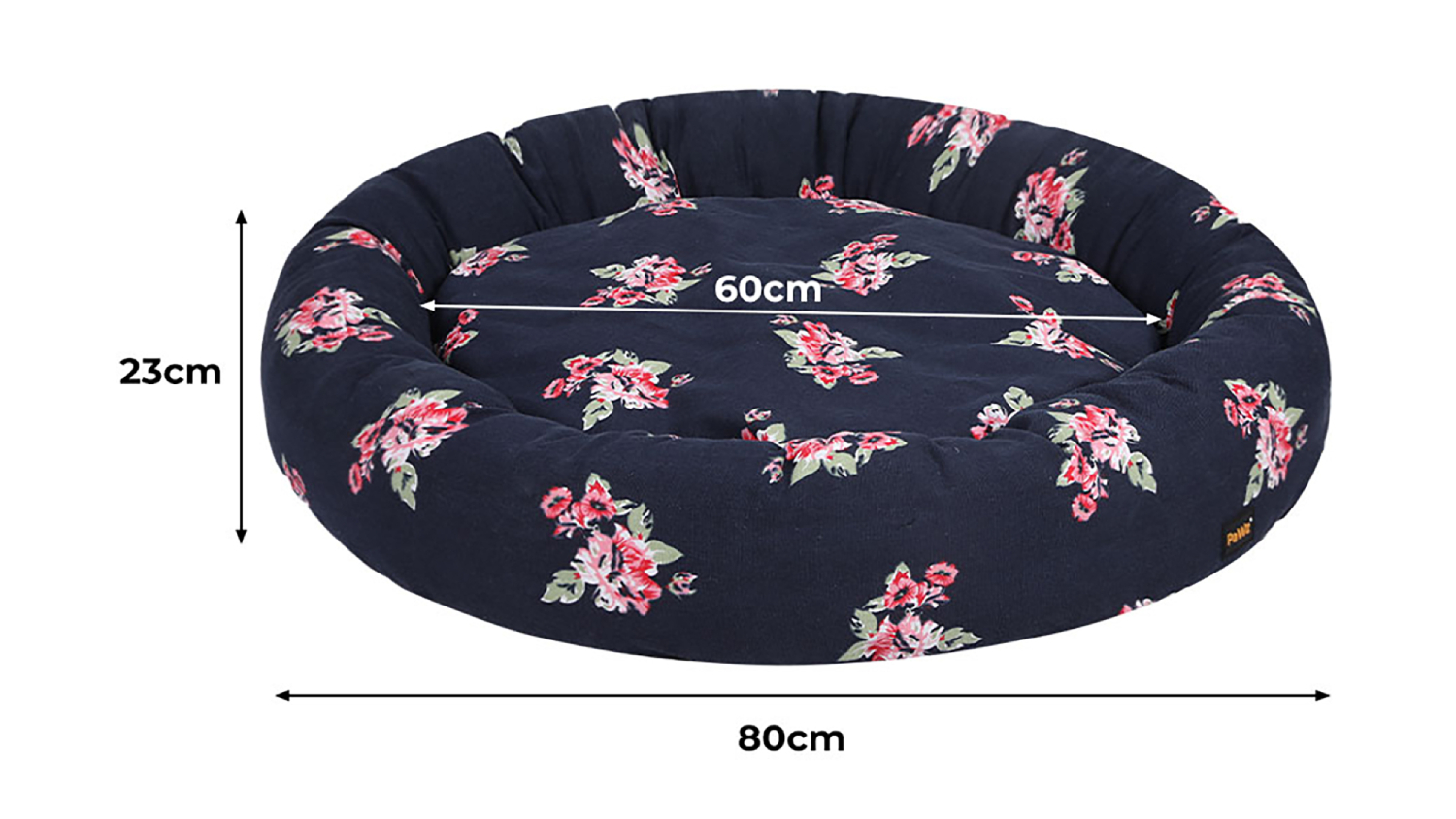 PaWz Plush Donut Dog Bed 80 x 23cm - Navy/Floral Pattern