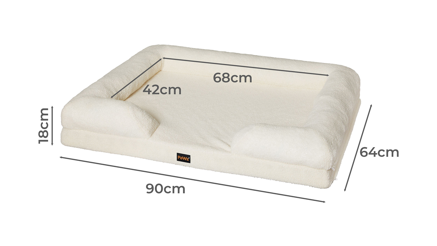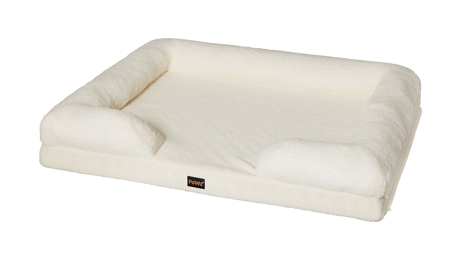 PaWz Premium Memory Foam Boucle Pet Bed with Bolsters 90 x 64cm - White