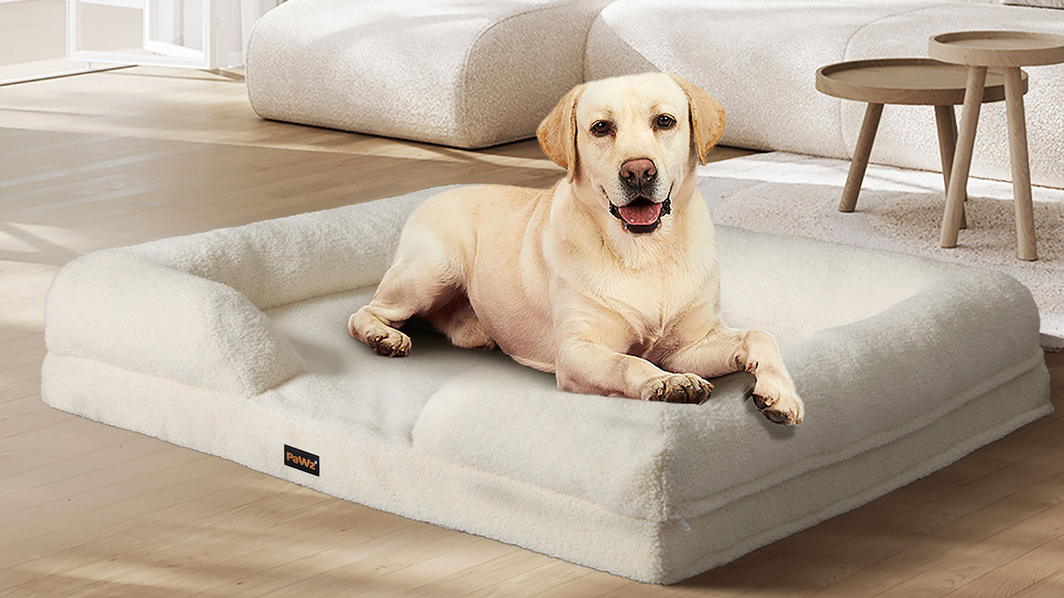 Give your furry friend the ultimate comfort with the PaWz Premium Memory Foam Boucle Pet Bed with Bolsters. Boasting a raised rim and orthopaedic egg crate foam material, this bed helps alleviate pressure on joints while providing incredible support for your pet’s head and neck. Now your fur baby can snuggle up and enjoy a restful sleep!