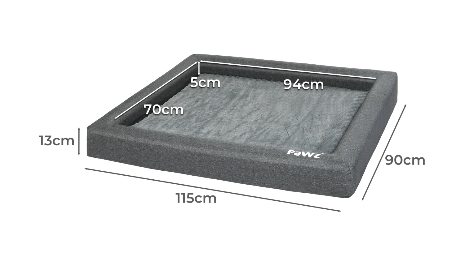 PaWz Premium Memory Foam Pet Bed 115 x 90cm - Grey