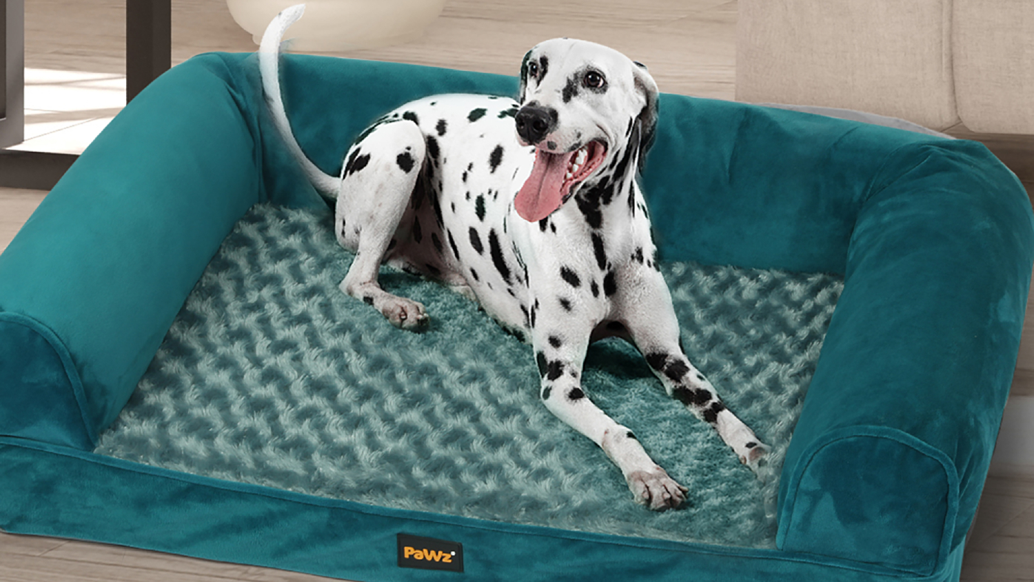 Pamper your furry friend with the PaWz Premium Pet Sofa Bed with Bolsters! Featuring a skin-friendly surface and orthopedic memory foam, it’s designed to calm pets for the ultimate nap experience. With a non-slip, waterproof underside, this durable bed stays put while offering easy-to-clean convenience. Give your dog or cat a bed so comfy, they’ll think it rivals yours!
