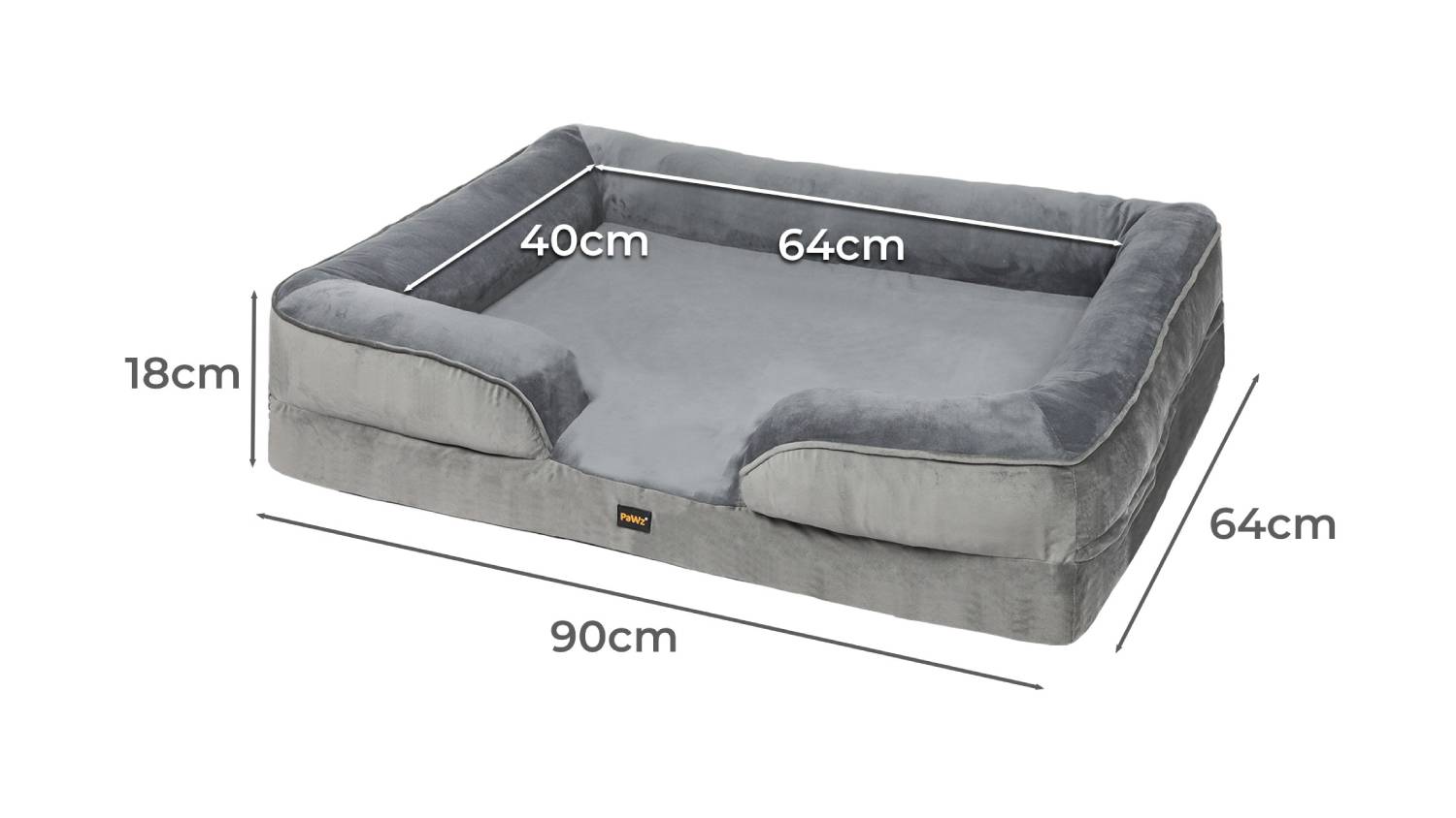 PaWz Premium Velvet-Feel Memory Foam Pet Bed 90 x 64cm - Grey