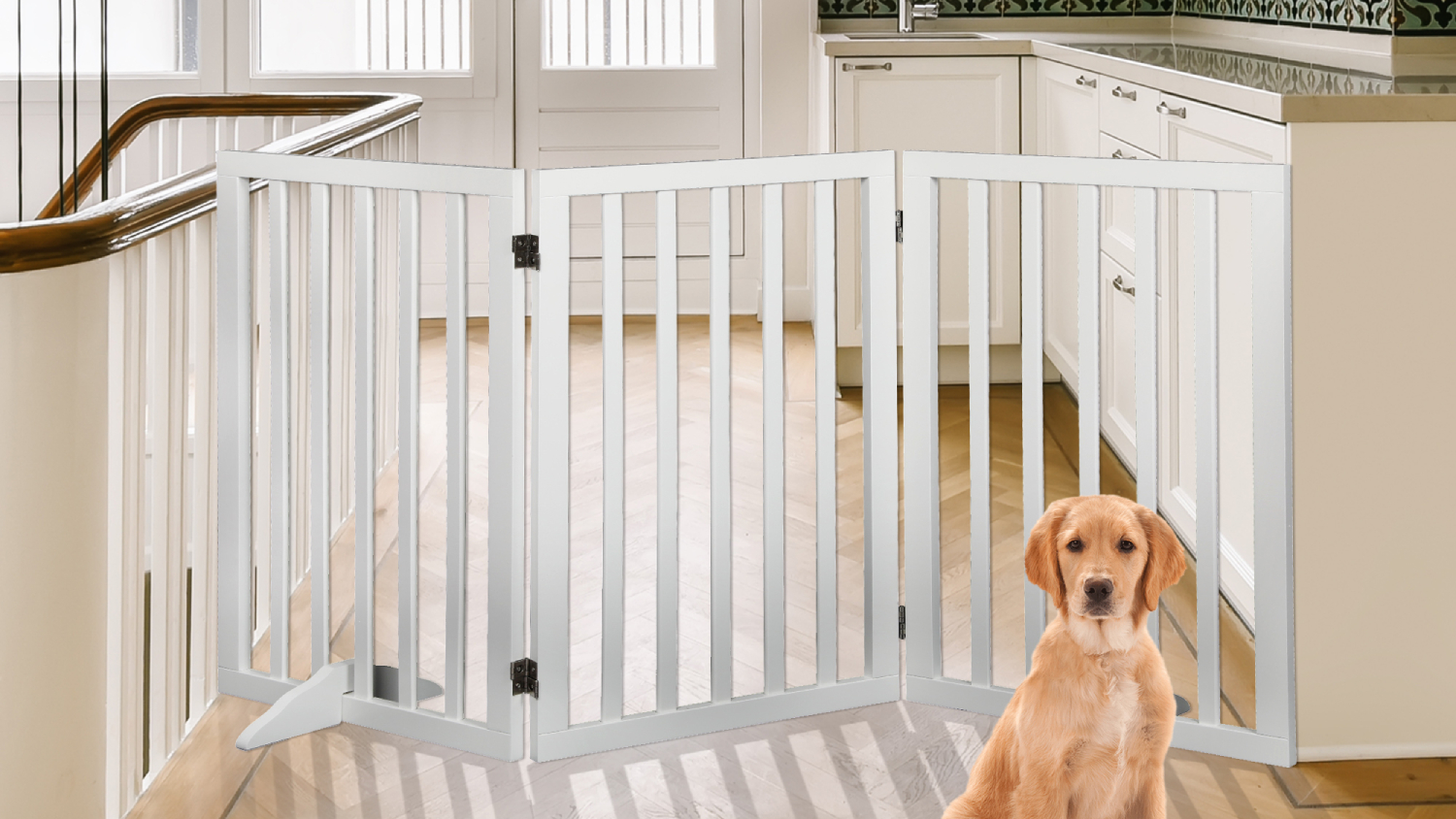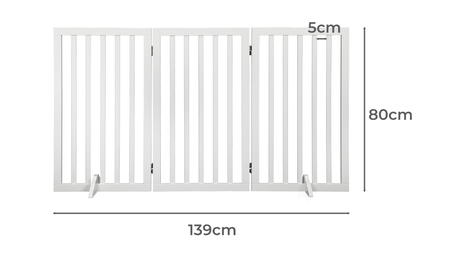 The PaWz Tall Wooden Pet Gate 139 x 80cm is the perfect solution to keep your pets out of restricted areas. Whether you need to block off a doorway, keep your dog away from food, or protect a Christmas tree, this gate with solid MDF construction has got you covered. With a foldable design and non-scratch rubber feet, this unit is easy to set up and move—no tools required!