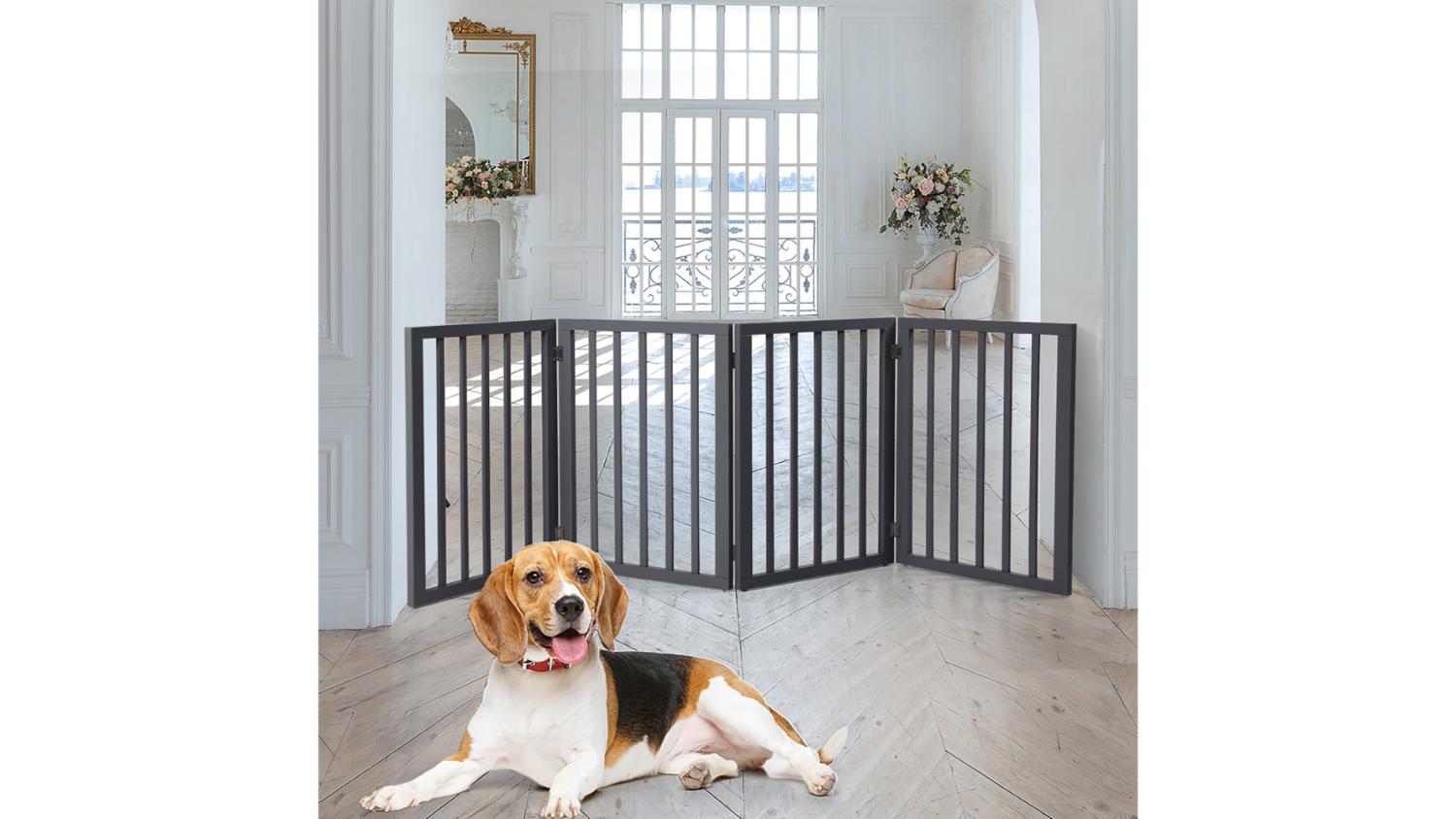 The PaWz 4-Panel Wooden Pet Gate is the perfect solution to keep your pets out of restricted areas. Whether you need to block off a doorway, keep your dog away from food, or protect a Christmas tree, this gate with solid MDF construction has got you covered. With a foldable design and anti-scratch rubber feet, this unit is easy to set up and move—no installation required!
