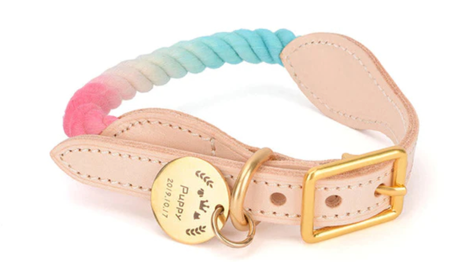 Let your pet's style reign supreme with the Fluff n' Stuff "Royalty" Rope/Leather Dog Collar! This beautiful collar is made with 100% natural cotton rope and natural vegetable tanning leather, making it both stylish and durable.
