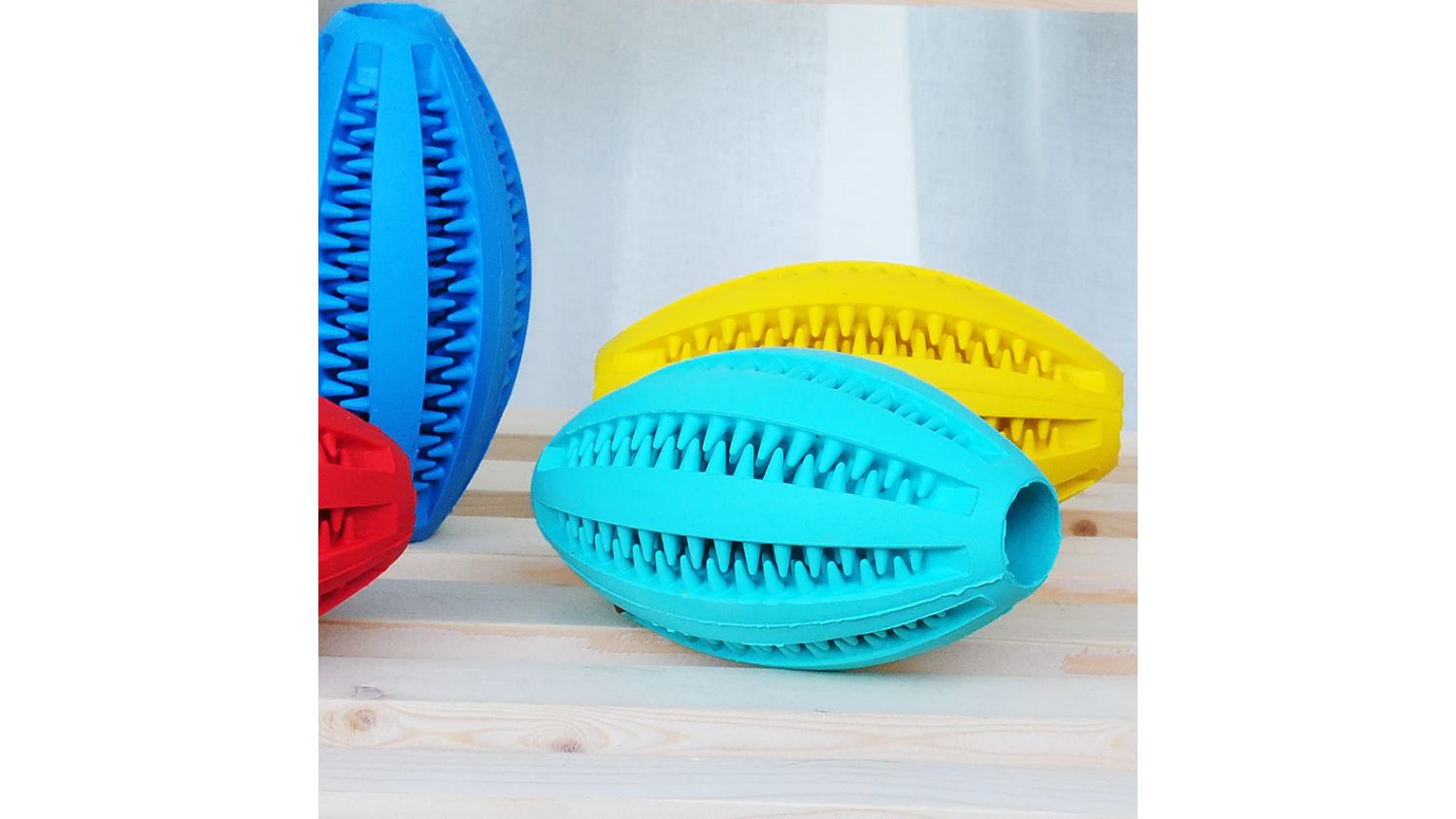 Bounce into fun and make dental care more enjoyable for your furry friend with the Fluff n' Stuff Rugby Ball-Shaped Treat Dispenser! The unique shape of the toy challenges your dog's mind as they try to figure out how to get the treats out. Plus, it features soft rubber points that provide an effective way to clean dirt and debris from your dog's teeth.