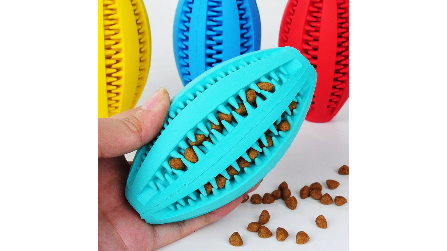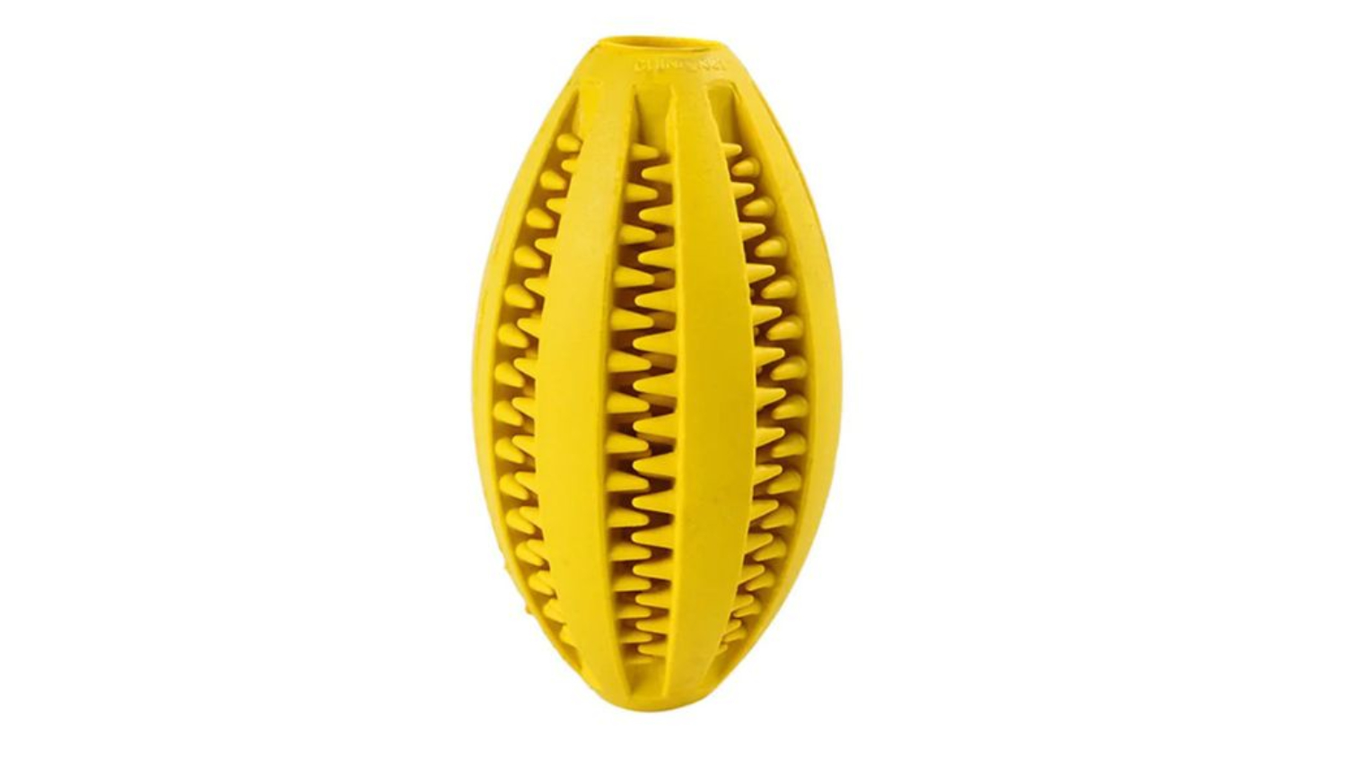 Bounce into fun and make dental care more enjoyable for your furry friend with the Fluff n' Stuff Rugby Ball-Shaped Treat Dispenser! The unique shape of the toy challenges your dog's mind as they try to figure out how to get the treats out. Plus, it features soft rubber points that provide an effective way to clean dirt and debris from your dog's teeth.