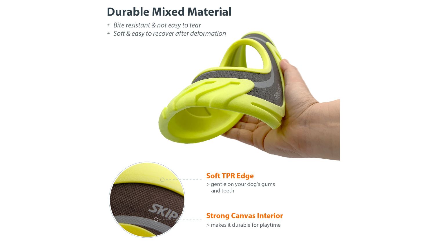 From fetch in the park to frisbee at the beach, the Skipdawg DuroFlex Disk is your ticket to cherished moments with your furry pals. Made of high-quality thermoplastic rubber and strengthened with nylon fabric, this disk is built to last. It's also lightweight and easy to throw, making it perfect for dogs of all sizes.