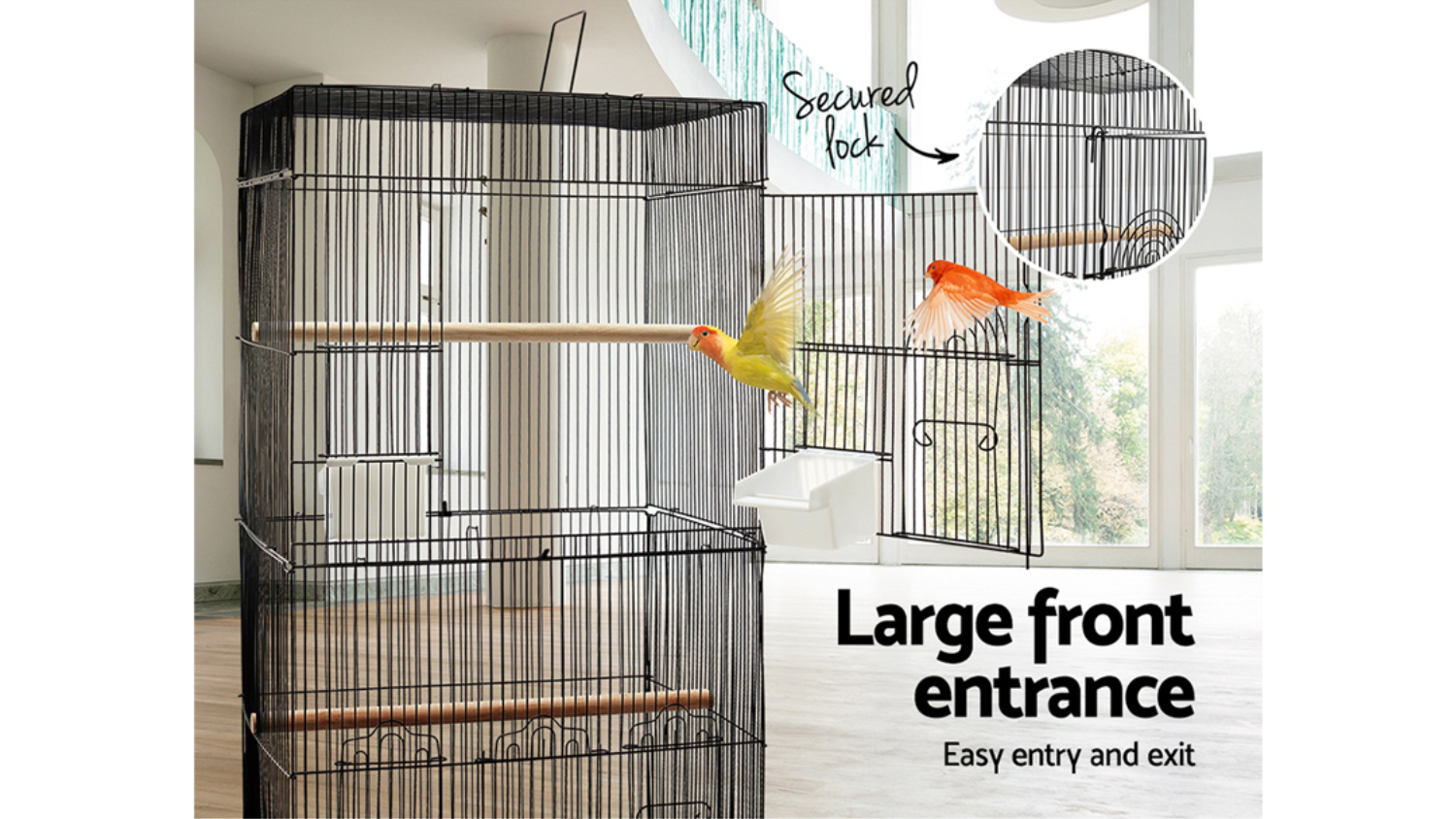 I.Pet Bird Cage Medium Rectangle with Perch 88cm - Black