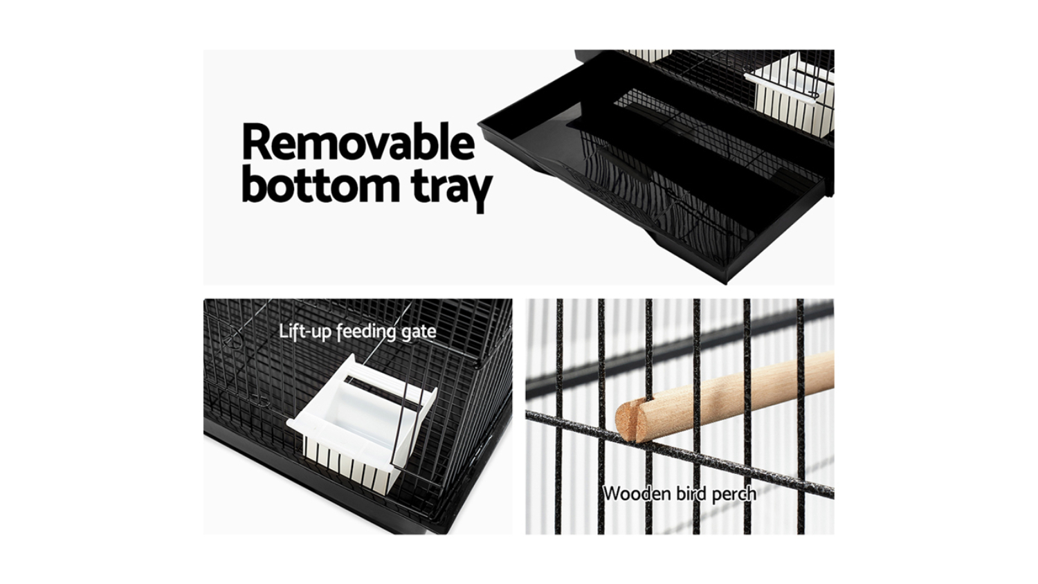 Get your pet the home they deserve with the I.Pet Bird Cage Medium Rectangle with Perch. Great for small to medium-sized birds, this cage offers plenty of room to rest, nest, and play. It is also made from a powder-coated wrought iron material to withstand the rigours of daily use. Additionally, this enclosure includes a slide-out removable bottom tray, a top handle, lift-up gates, a large front entrance, and an optional small door.