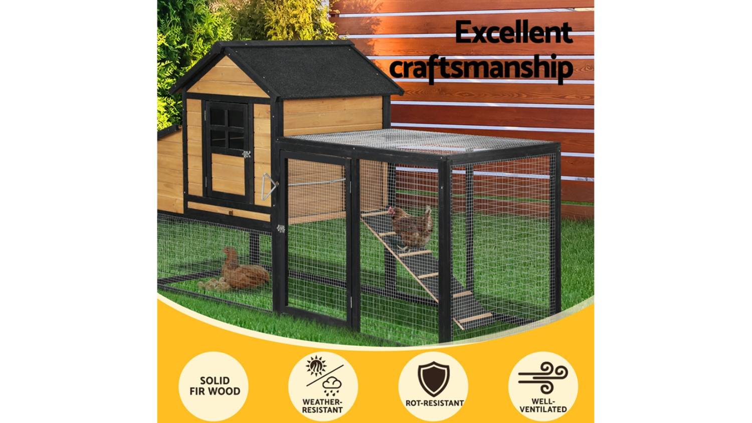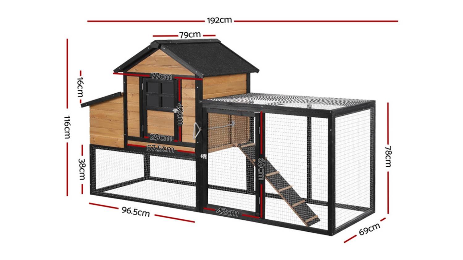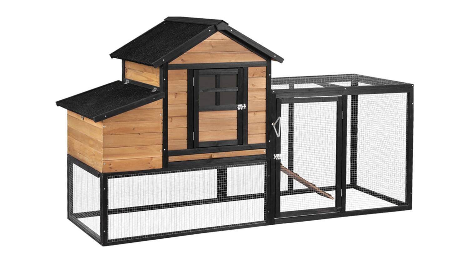 Keep your flock safe and happy with the I.Pet Durable Wooden Chicken Coop. Crafted from durable fir wood and protected by a weather-resistant asphalt roof, this coop is built to withstand the elements. It features a large, enclosed play area, an integrated ramp, and a convenient hatching box for eggs. Plus, the slide-out tray makes routine cleaning a breeze, and the coop is easy to assemble.