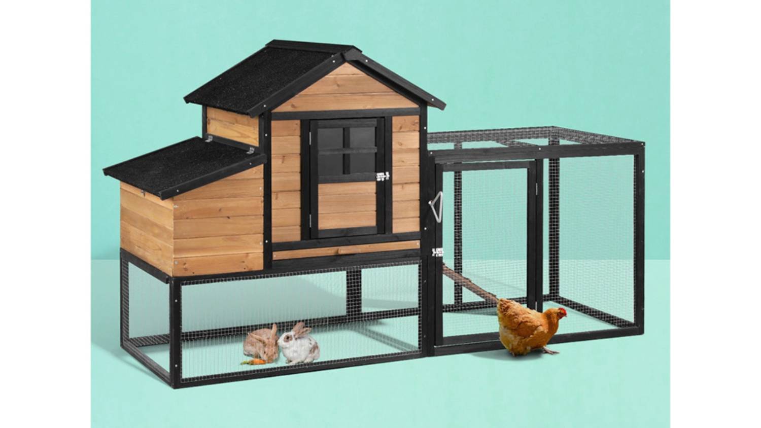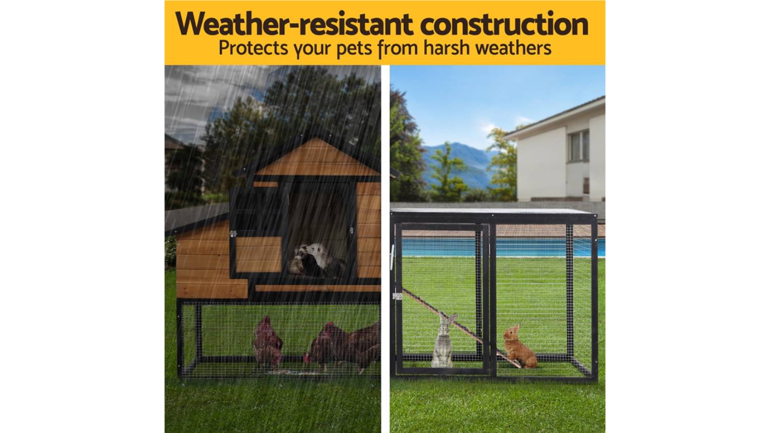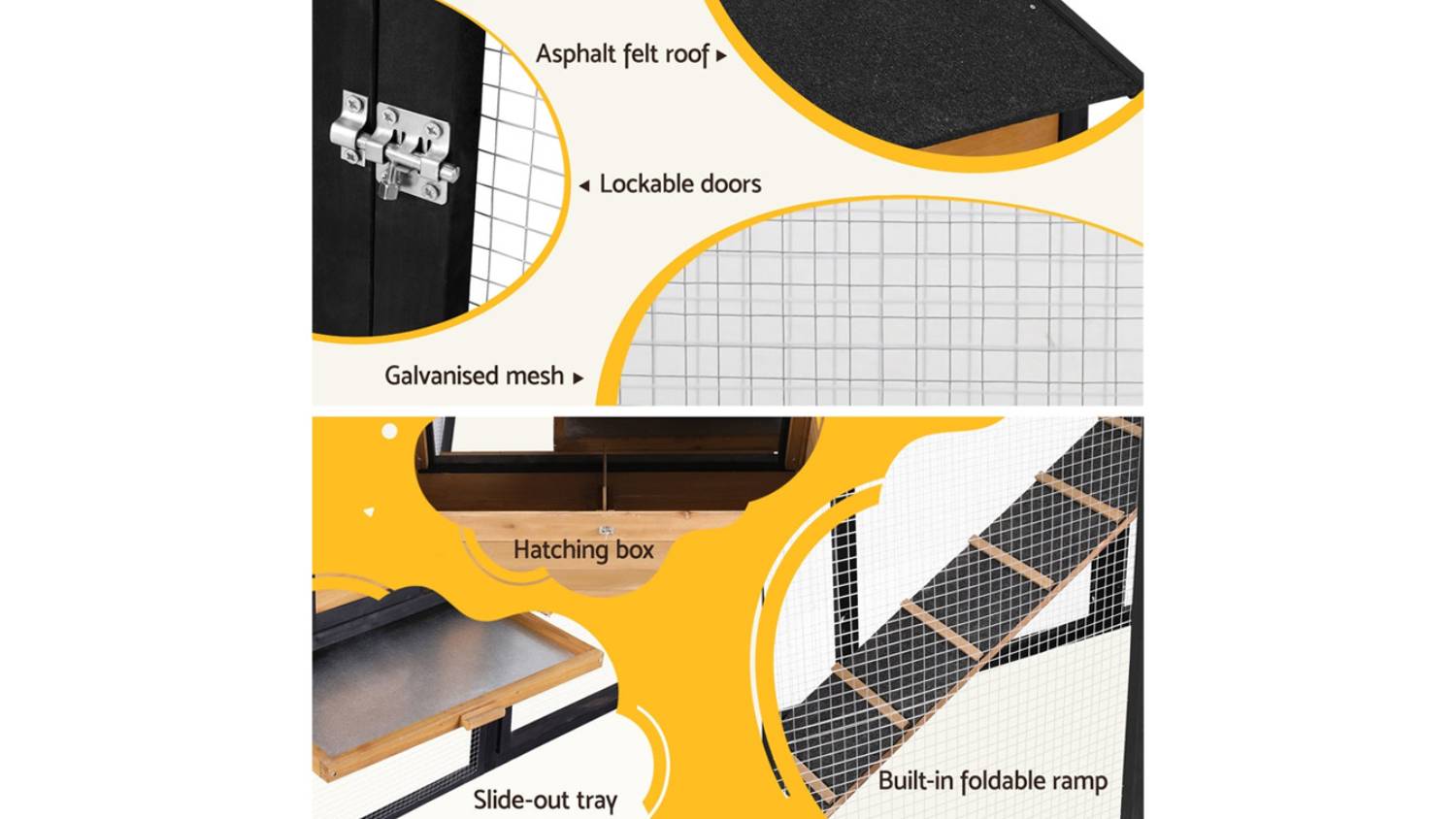 Keep your flock safe and happy with the I.Pet Durable Wooden Chicken Coop. Crafted from durable fir wood and protected by a weather-resistant asphalt roof, this coop is built to withstand the elements. It features a large, enclosed play area, an integrated ramp, and a convenient hatching box for eggs. Plus, the slide-out tray makes routine cleaning a breeze, and the coop is easy to assemble.