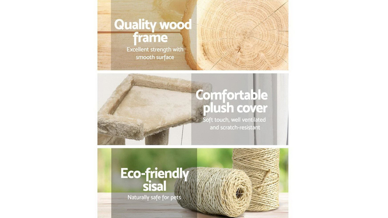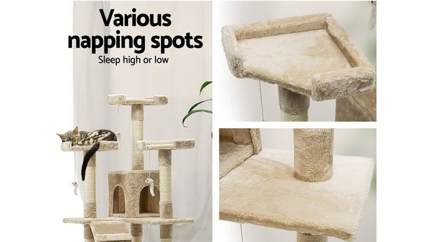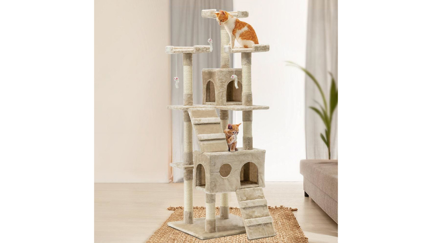 Give your feline friend the ultimate adventure centre with the I.Pet Giant 180cm Scratching Tower. This multi-level cat tree is built with stable wooden construction and covered in soft plush, offering ample space for activity. It features natural sisal posts, cosy bed cubes, cradles, and a ladder for climbing, plus fun hanging toys, making it the perfect all-in-one piece for scratching, perching, and sleeping.