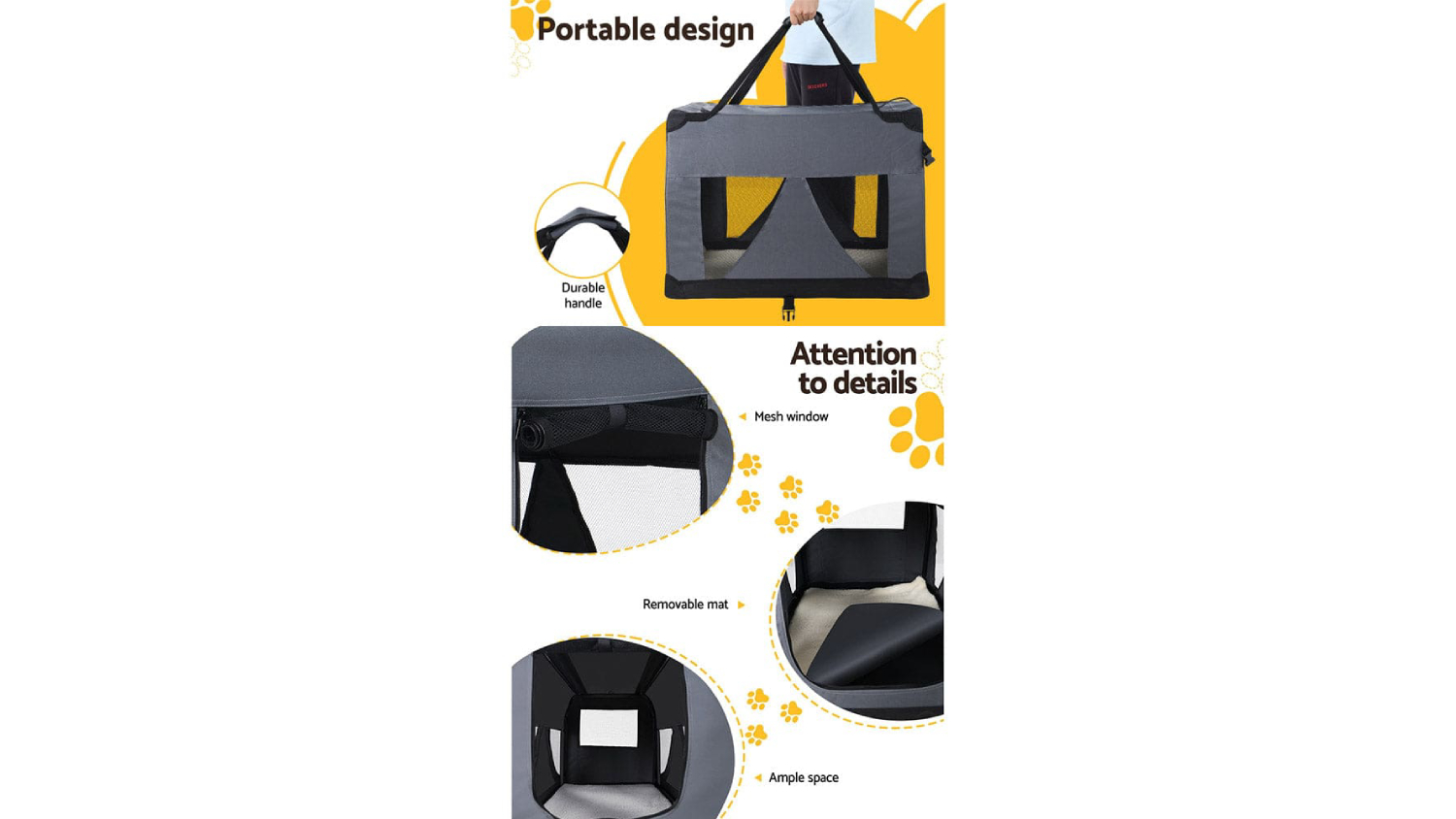 Travelling with your furry friend just got easier! The I.Pet Portable Foldable Mesh Pet Carrier is built from premium 600D Oxford cloth for incredible durability and comfort. Its breathable mesh windows keep the air flowing, while the two zippered doors make entry and exit a breeze. Plus, it is also washable, foldable, and comes with a durable frame and handle for hassle-free transport.