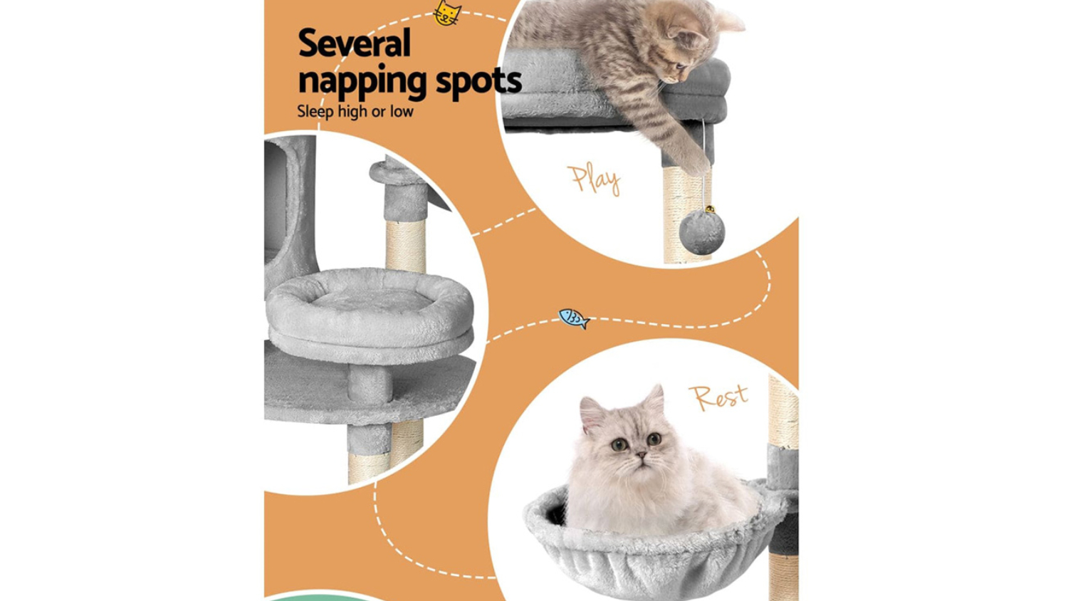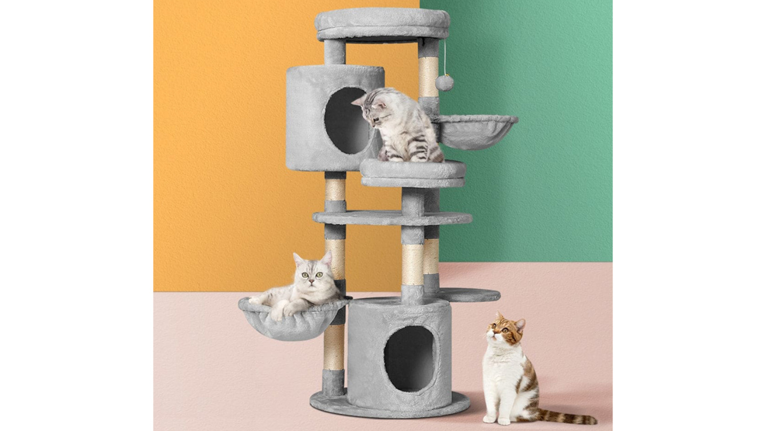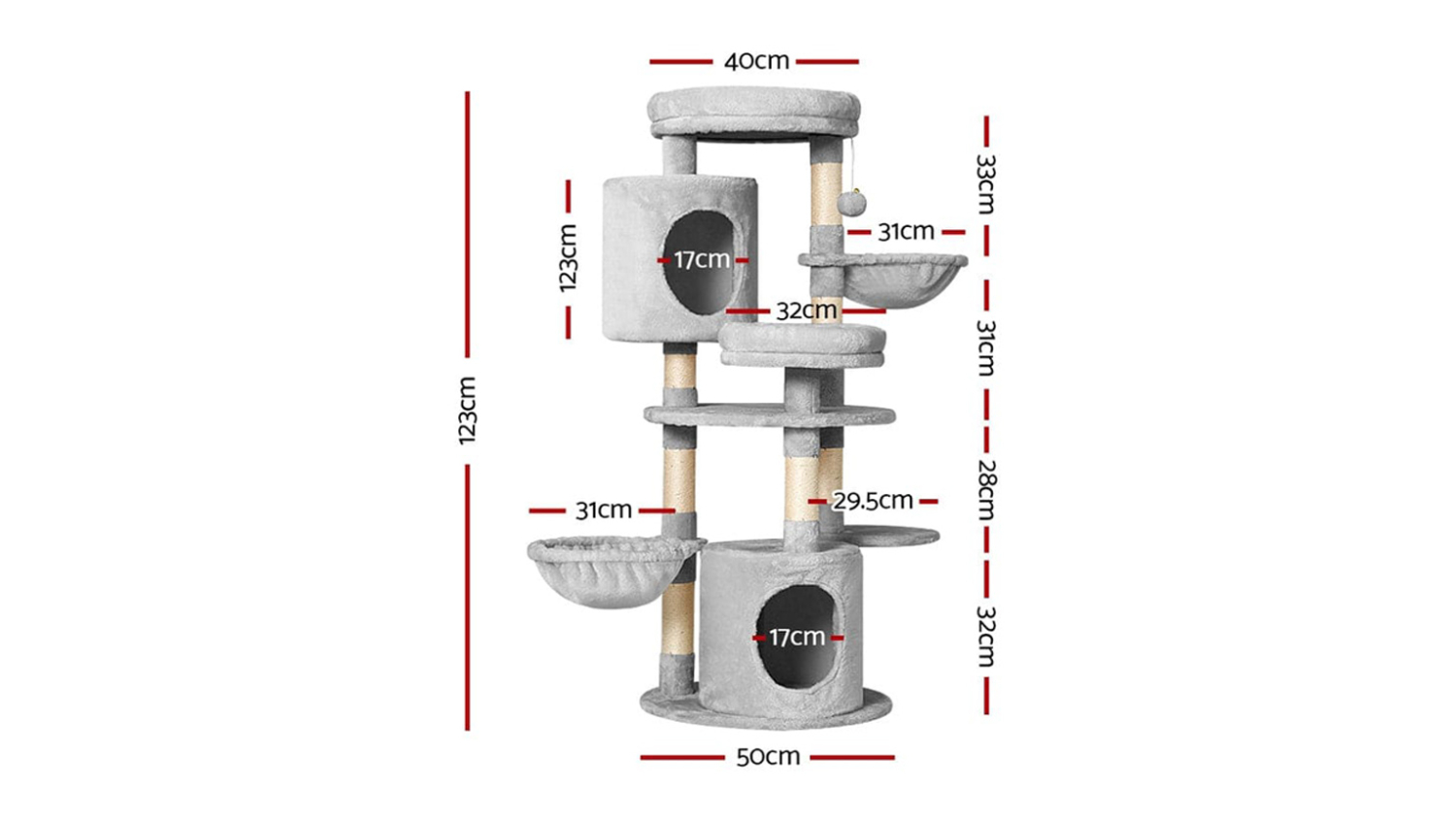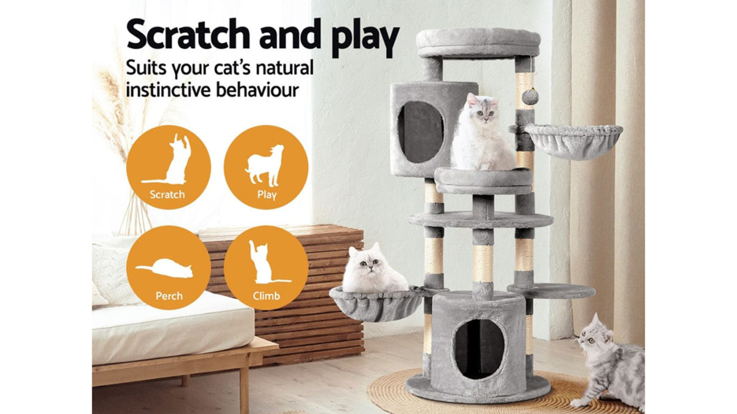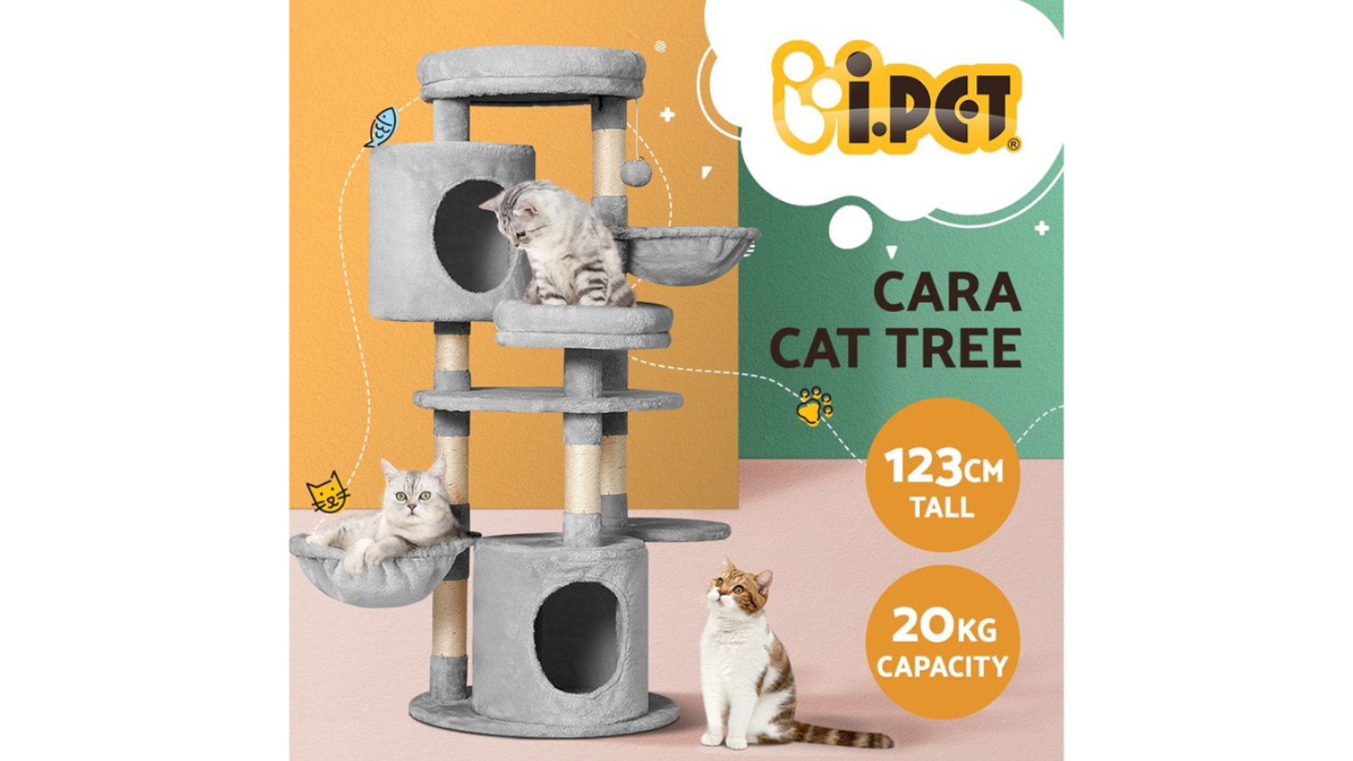 Maximise your feline friend’s comfort with the I.Pet Scratcher Cat Tree. This medium-sized tower boasts a stable wooden construction and features an inviting soft plush velvet cover. The multi-level design ensures your cat has multiple areas for both playing and napping, while the durable natural sisal posts protect your furniture. It's the stable, stylish solution for any cat owner.