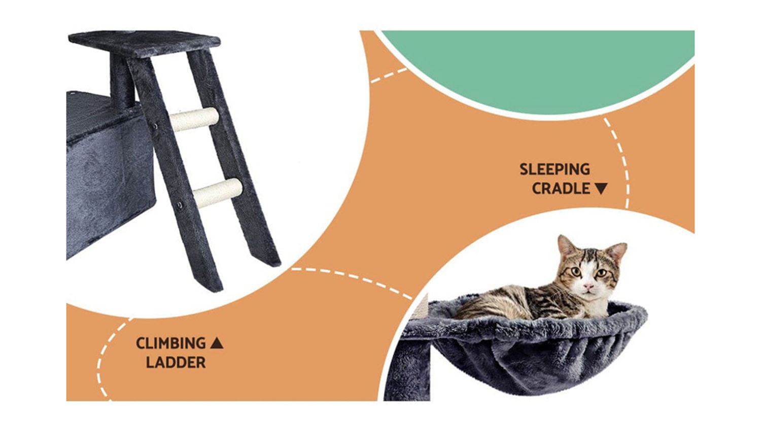 Give your feline friend the ultimate playground with the I.Pet Scratcher Tree Tower. This medium-sized unit is built for durability and comfort, featuring a sturdy wooden construction and a soft plush cover. The multi-level design is packed with amenities, including natural sisal posts for scratching, two bed cubicles, two sleeping cradles, and a fun hanging ball, ensuring your cat has plenty of spots for napping and playing.