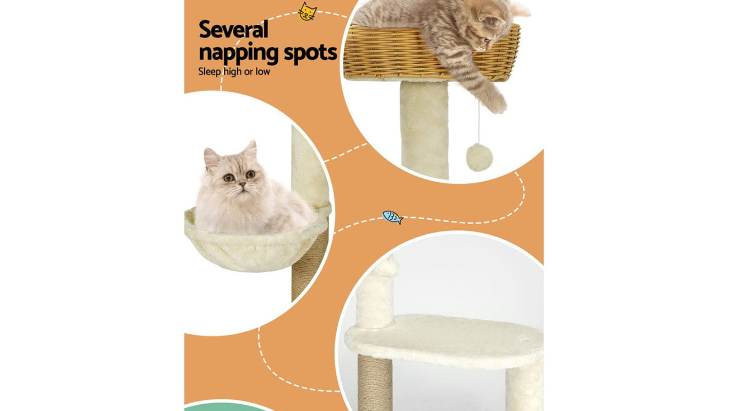 Indulge your beloved cat with the luxurious I.Pet Wooden Scratching Tree. Crafted with stable wooden construction and wrapped in soft plush, this cat tree offers numerous spots for rest and play. It also includes natural sisal posts, cosy bed cubes, cradles, and toys. Plus, it’s designed to be durable and easy to assemble, making it an all-in-one centre for every cat activity.