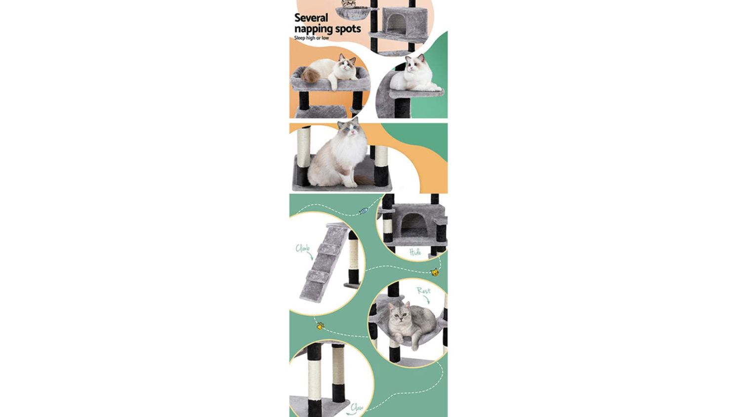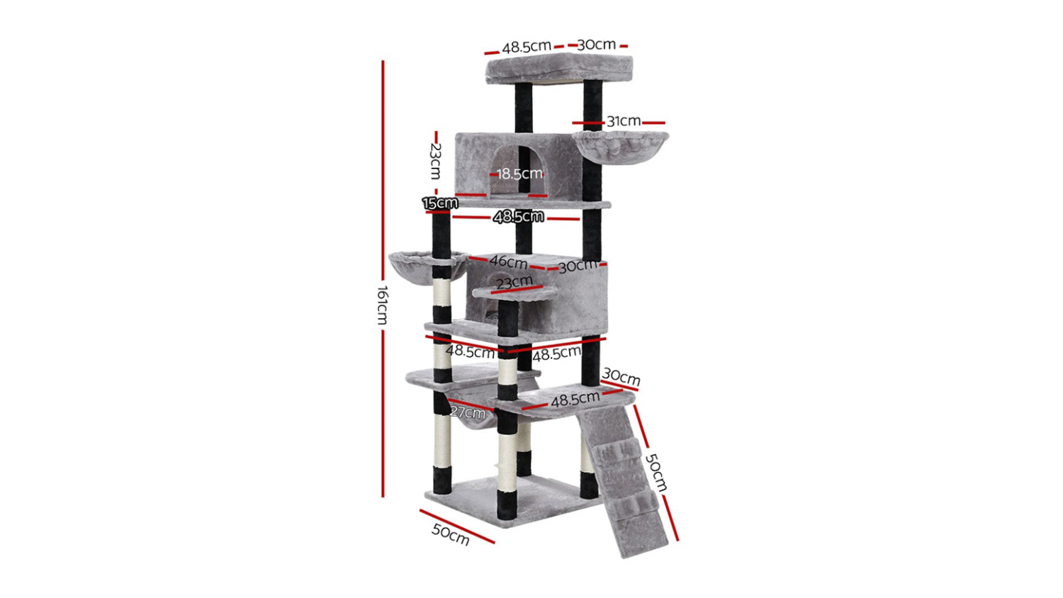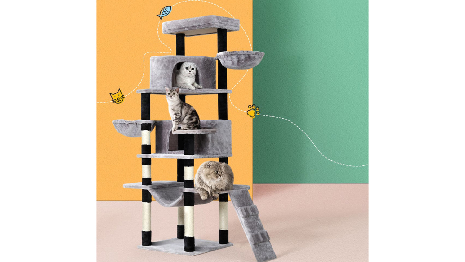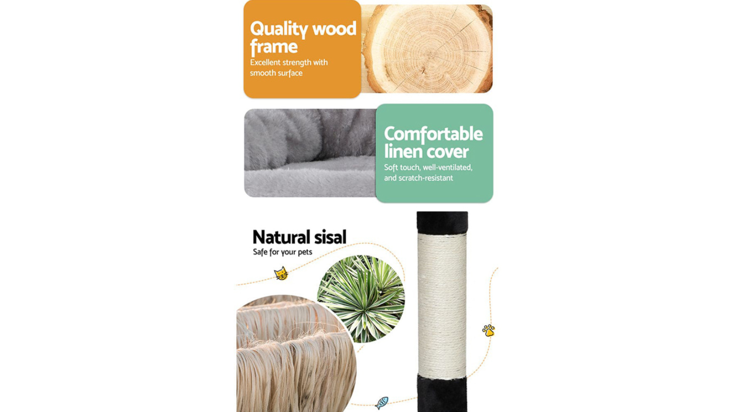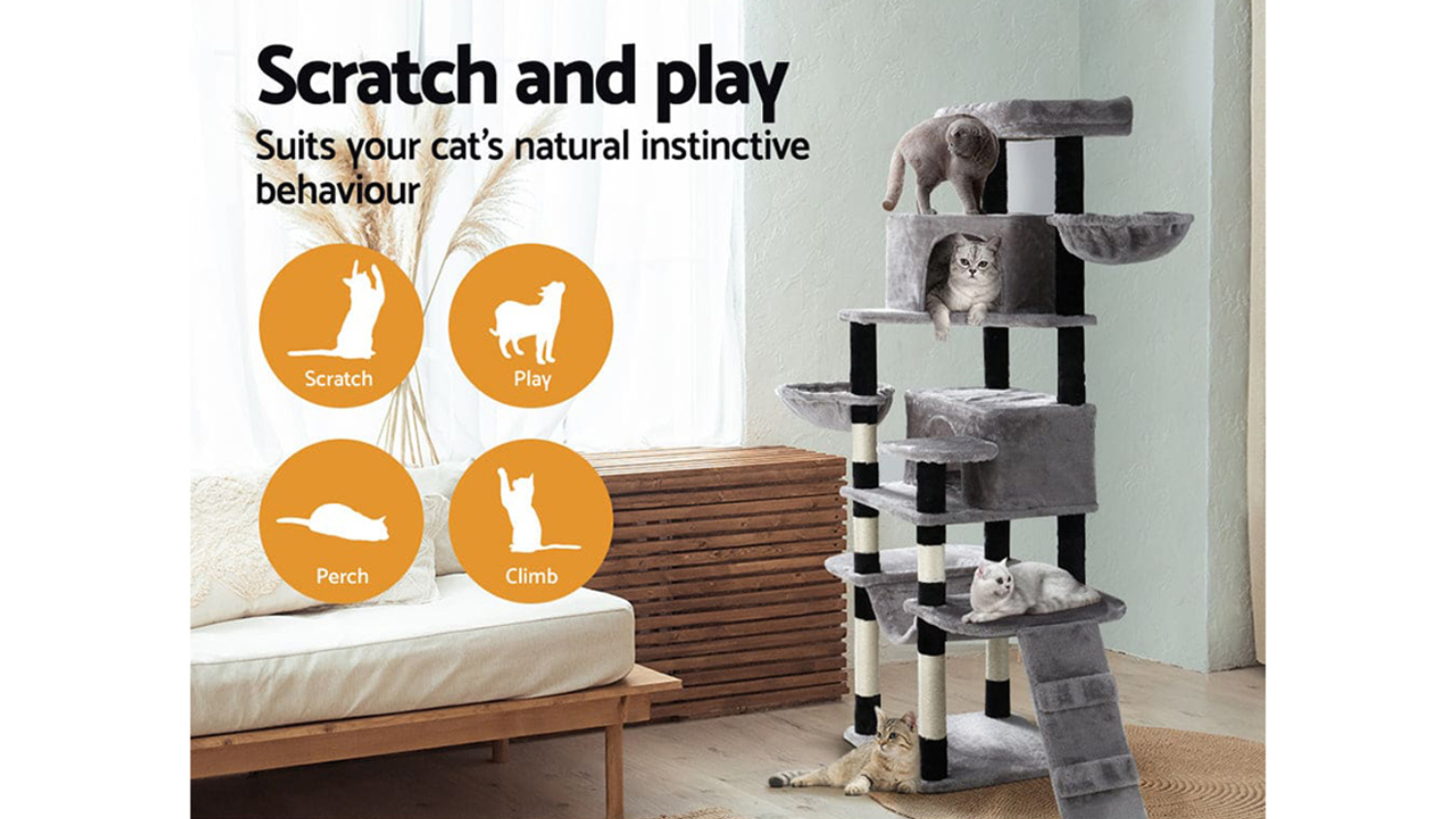 Indulge your beloved cat with the luxurious I.Pet Wooden Scratching Tree. Crafted with stable wooden construction and wrapped in soft plush, this cat tree offers numerous spots for rest and play. It also includes natural sisal posts, cosy napping and playing spots. Plus, it’s designed to be durable and easy to assemble, making it an all-in-one centre for every cat activity.