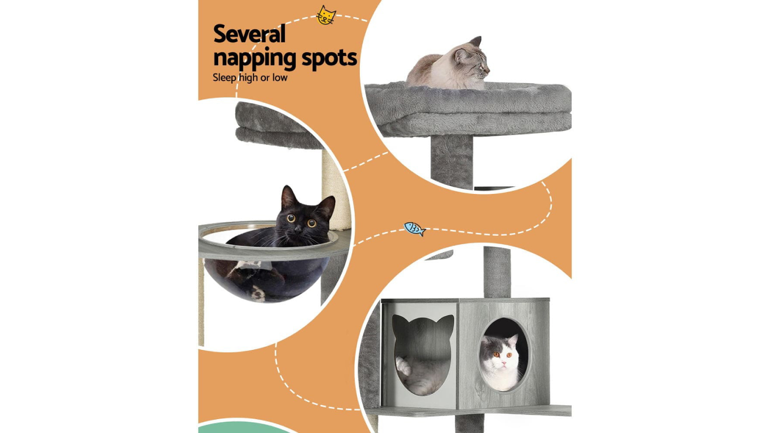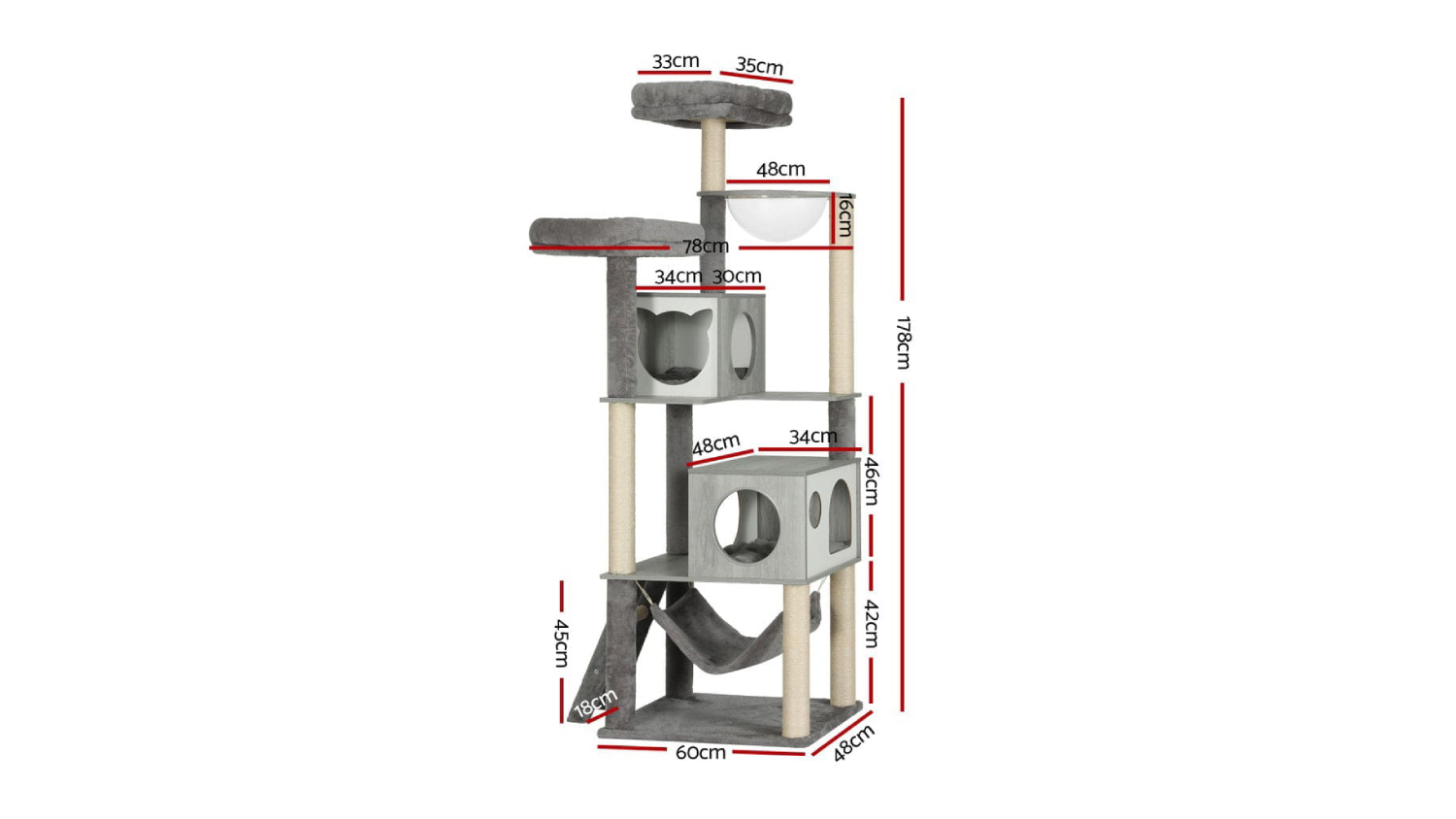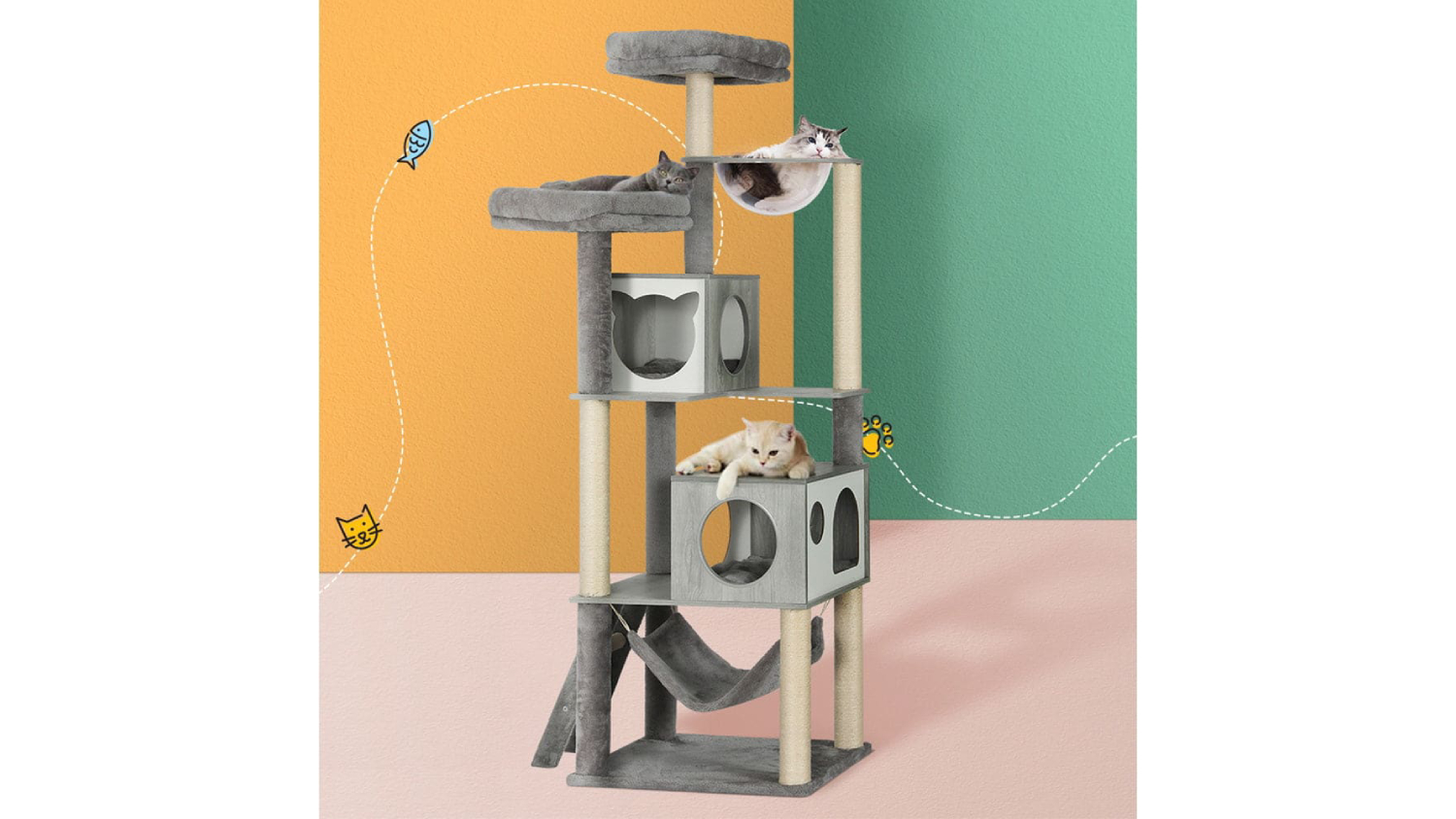 Give your feline friend the ultimate playground with the I.Pet Wooden Scratching Tree. Built with stable wooden construction and wrapped in soft plush, this cat tree offers numerous spots for rest and play. It includes natural sisal posts, cosy bed cubes, cradles, and hammocks. Plus, it’s designed to be durable and easy to assemble, making it an all-in-one centre for every cat activity.