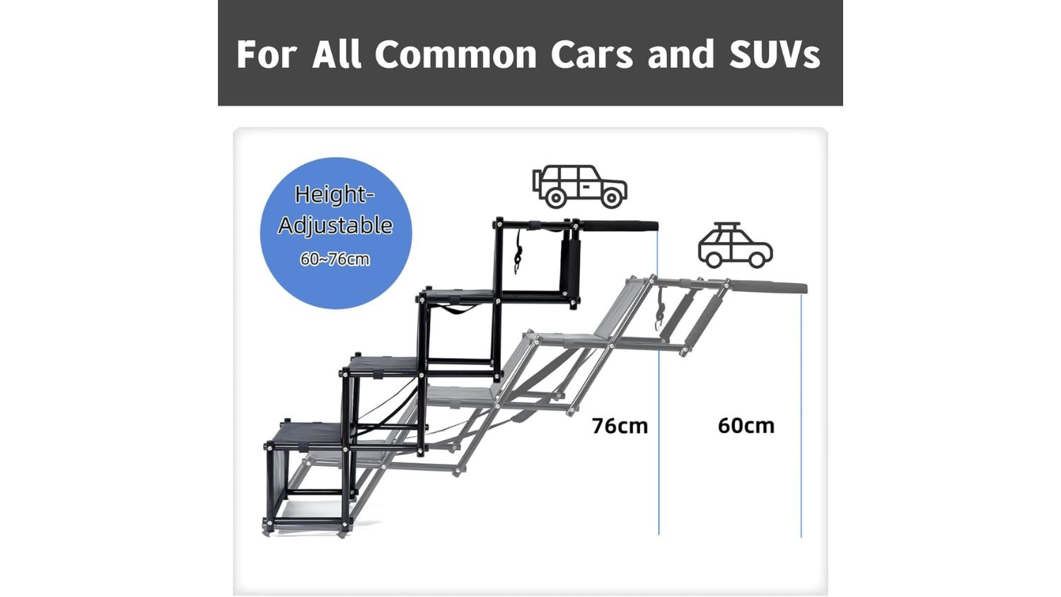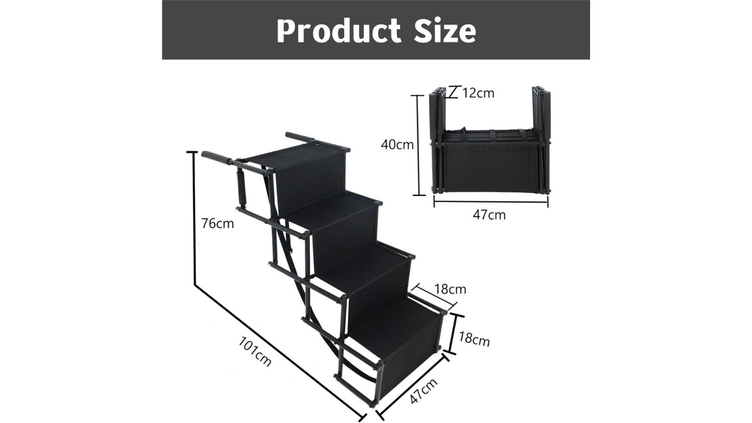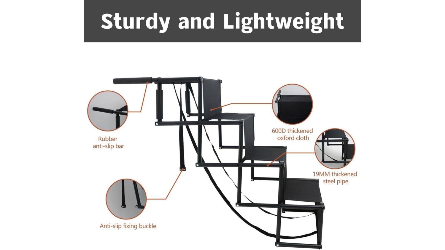 Make accessibility easy for your furry friend with the Kmall Folding Pet Stairs for Cars. Built from durable 19mm steel pipes and wear-resistant 600D Oxford fabric, these steps support pets of all sizes up to 60 kg. It features an adjustable height (60-76 cm) to fit cars, couches or high beds, and includes a non-slip rubber bar and secure fixing buckle to prevent slipping during entry and exit.