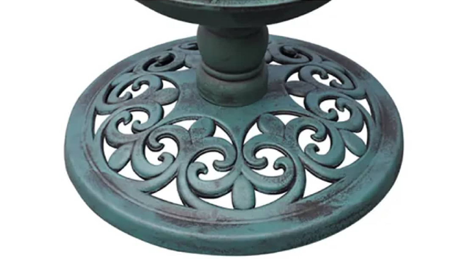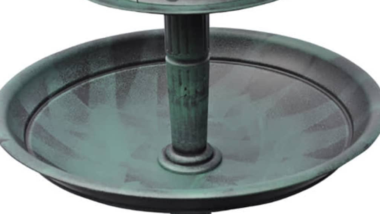 NNEVL Bird Bath with Feeder & Solar-Power Light - Copper Patina
