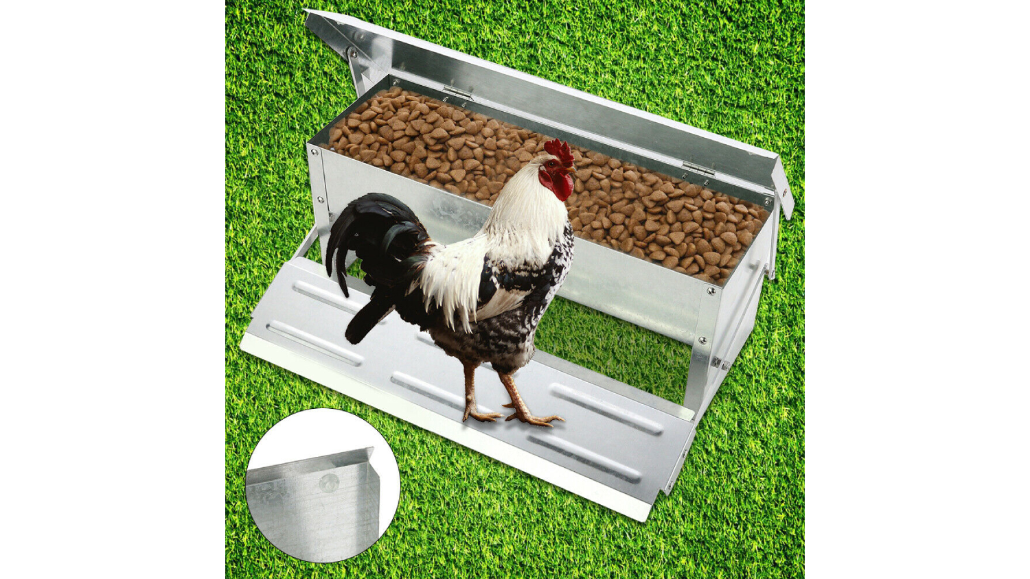 Keep your feathered friends happy and healthy with the TSB Living Galvanized Chicken Feeder! Made from durable, rust-resistant metal, this automatic feeder ensures your flock can have their meal anytime. It features a weight-operated lid that opens when a minimum of 500 grams is on the platform.