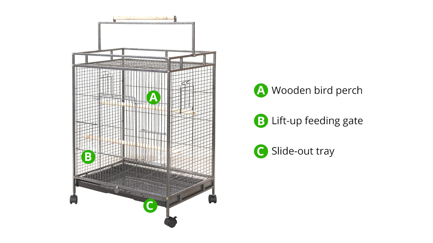 Traveling with your feathered friend? The TSB Living Wheeled Travel Bird Cage with External Perch is the perfect solution! This portable cage is easy to move around, thanks to its smooth wheels and lightweight design. It features a slide-out tray for easy cleaning, a lift-up feeding gate, and a comfortable wooden perch.
