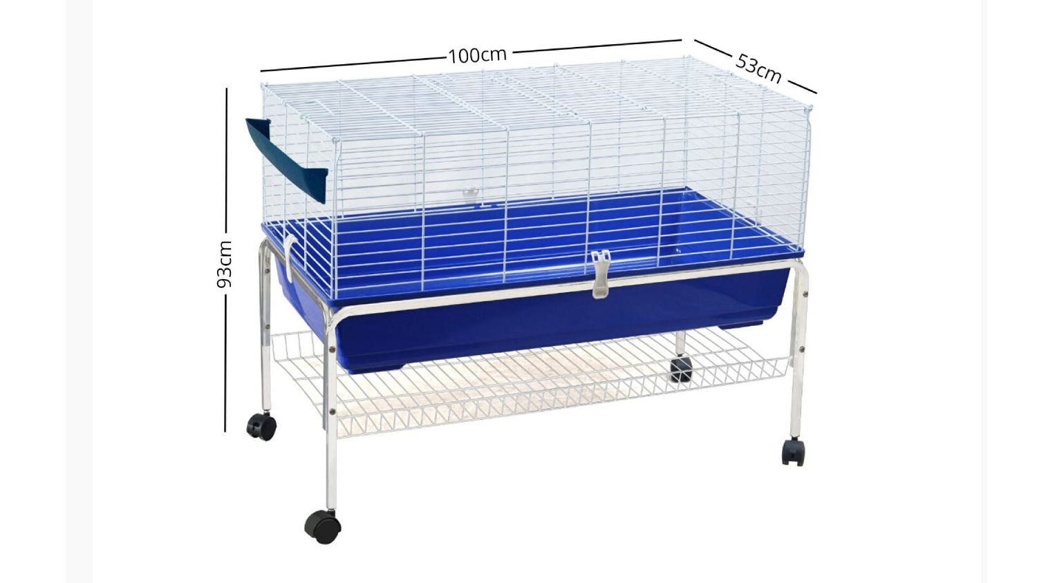 Give your pets a good home with the TSB Living Wheeled Travel Small Pet Cage with Storage Shelf 100 x 53 x 93cm. This sturdy cage features a heavy-duty frame and easy-clean detachable bottom, making it a breeze to keep your furry friends happy and secure!