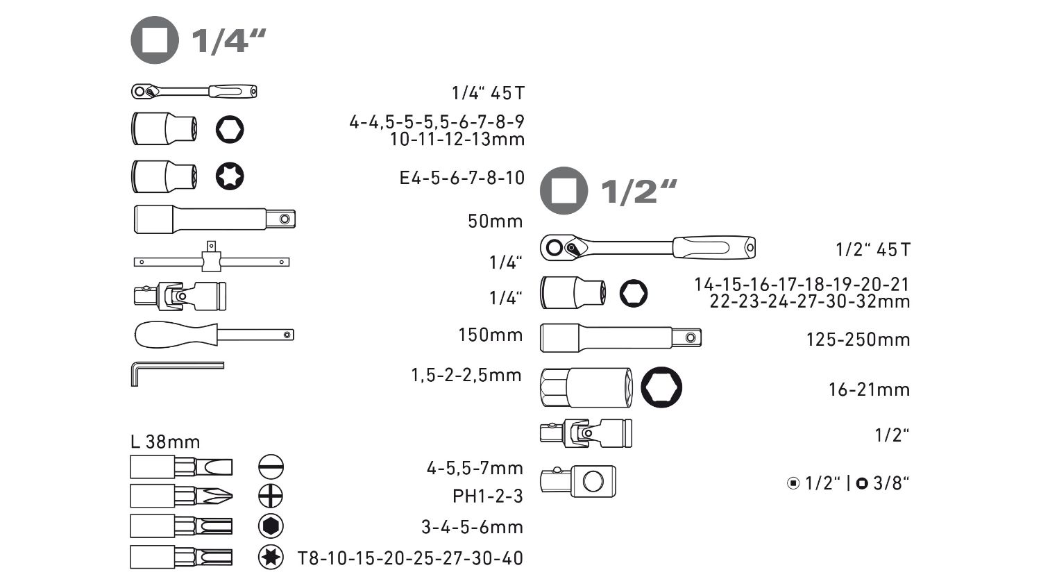 Upgrade your toolkit and elevate your DIY game with Extol Socket Set! Its comprehensive range of sockets provides you with endless possibilities for various projects. Crafted from durable chrome vanadium steel, each socket is built to withstand heavy-duty use and deliver precise torque. With its organised and compact carrying case, you can easily transport and store your sockets, ensuring they're always within reach.