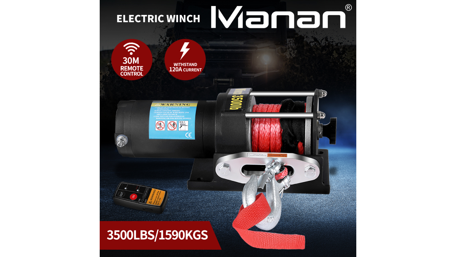 Need to pull heavy loads? The Manan Remote Controlled Electric Winch with Synthetic Band 1590kgs has you covered! With a 1.3 HP motor, this winch effortlessly handles weight up to 1590kgs, perfect for tugging your vehicle in case it gets stuck in the mud. Control it wirelessly from up to 30 metres away with the included remote. Plus, its durable construction and automatic brakes ensure safe and reliable operations.