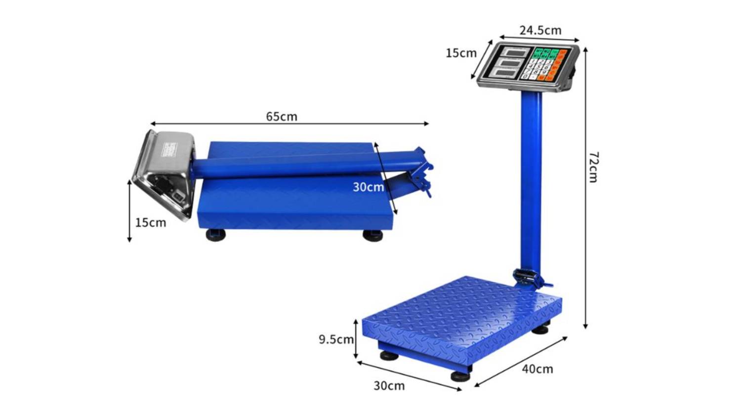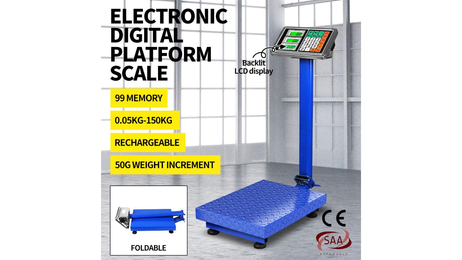 Get accurate weight measurements with the Sello Rechargeable Industrial Digital Platform Scale. This durable, heavy-duty tool weighs packages up to 150kg. It features a steel weighing plate, an oil- and water-resistant keyboard, and a bright LCD. The unit also boasts a rechargeable battery lasting up to 40 hours, adjustable feet for stability, and a foldable design.