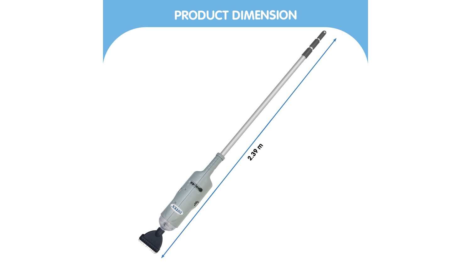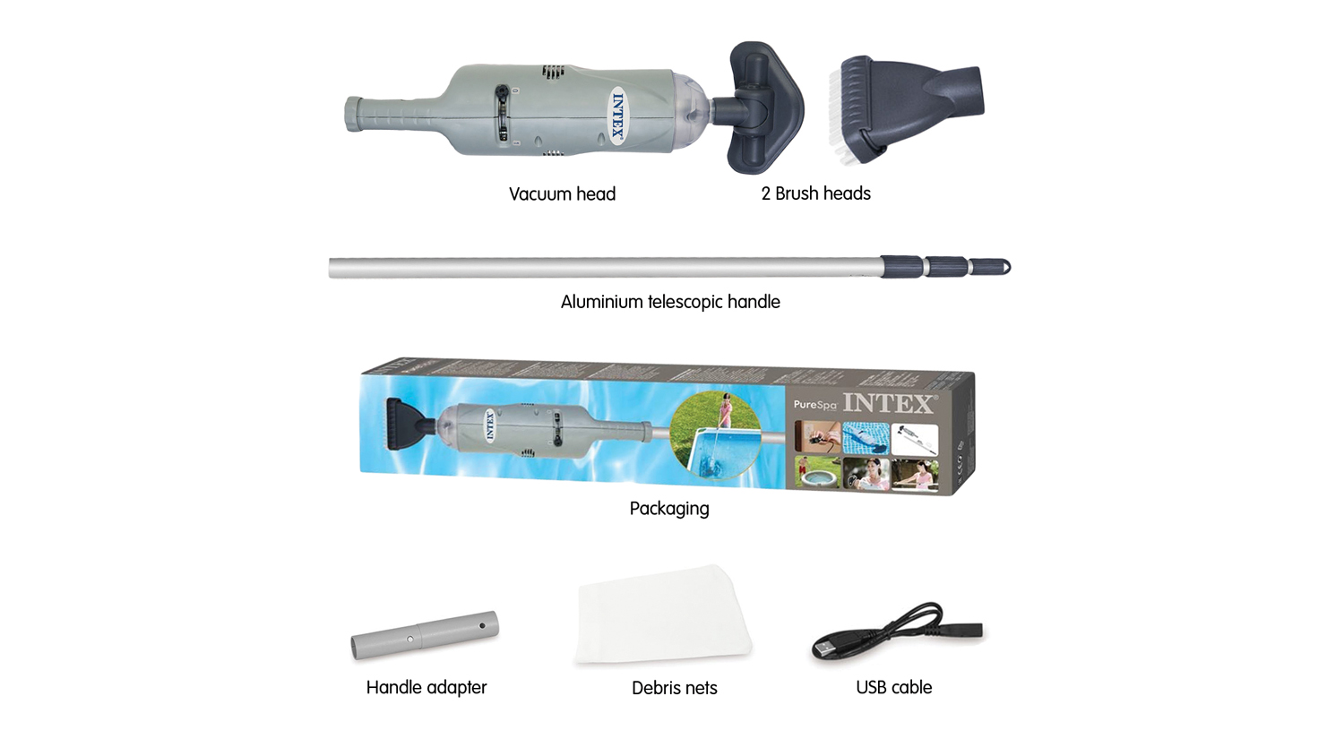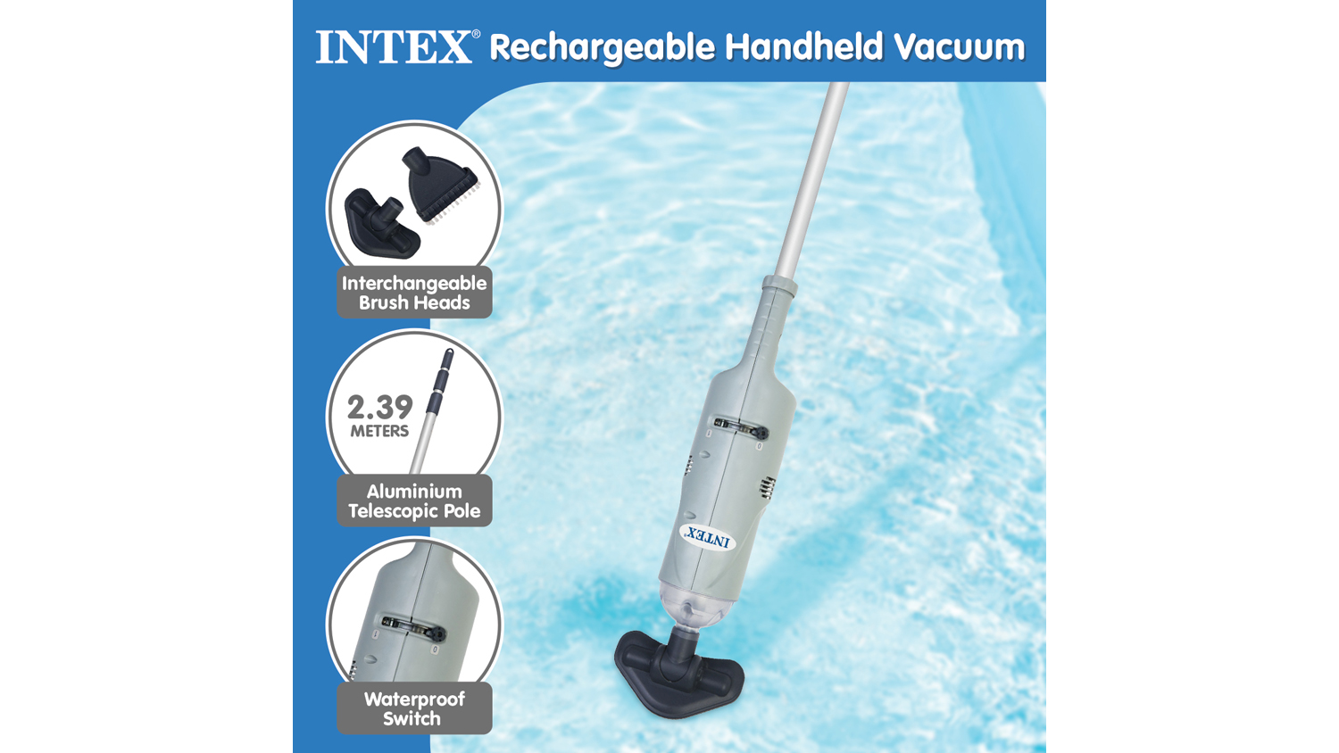 Keep your pool clean at all times using the Intex Rechargeable Handheld Pool Vacuum. Convenient to use, this handy device is engineered with a lightweight build, telescoping aluminium shaft, and automatic shut-off feature. It also utilises two interchangeable brush heads to suit your varying cleaning needs.