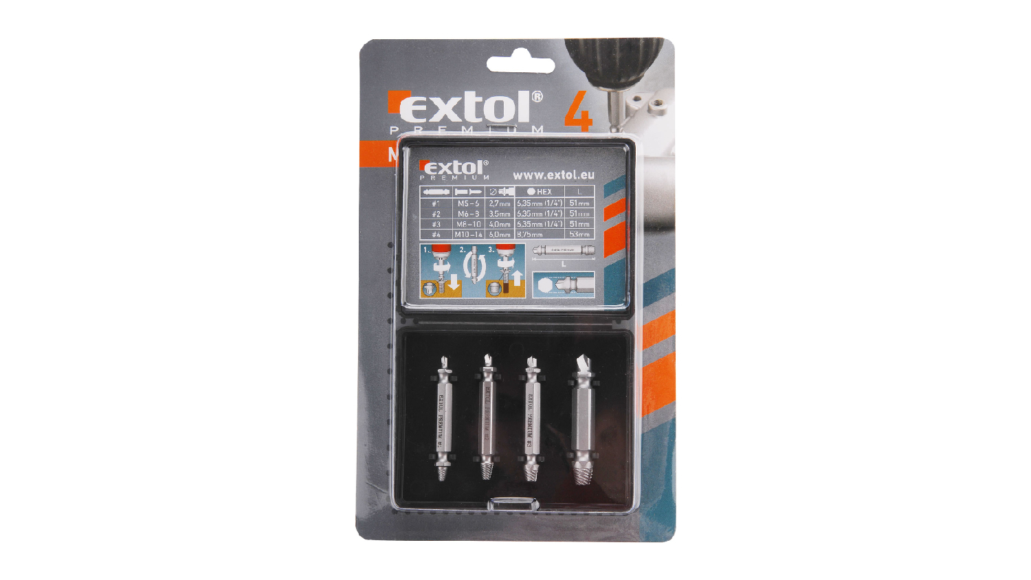 Get ready to revolutionise your toolbox with the Extol HSS Screw Extractor Set 4pcs, the ultimate solution for extracting damaged or stripped screws. Crafted with precision and engineered for performance, this set empowers you to easily conquer any screw extraction task. Whether you're working on home repairs, automotive projects, or woodworking, our extractors are your secret weapon to save time, effort, and frustration.