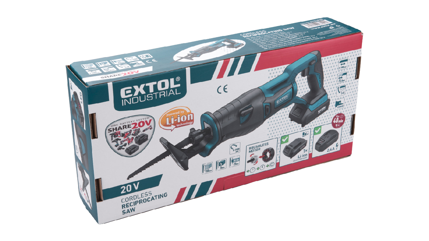 Extol SHARE20V Cordless Brushless Reciprocating Saw with 2000mAh Battery