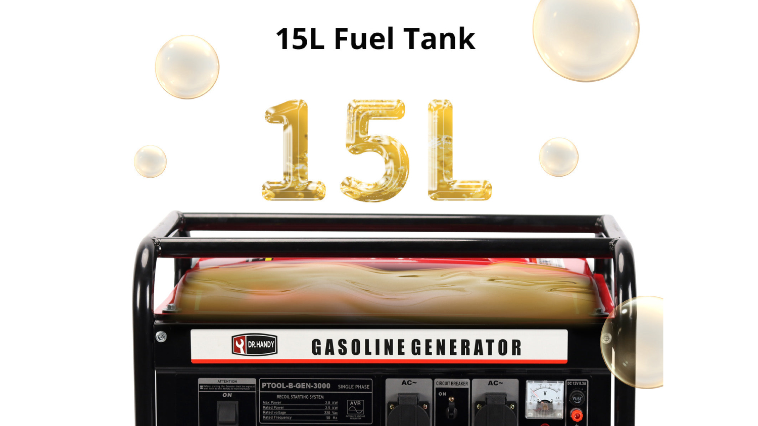 Stay powered with the TSB Living Petrol Generator 3000W, your panic-proof hero. This unit offers up to 13 hours of runtime. It also features an air-cooled, 4-stroke engine, and an easy recoil starting system to ensure optimum performance. Plus, this generator equips a 15L fuel tank and a 1.1L oil tank capacity.