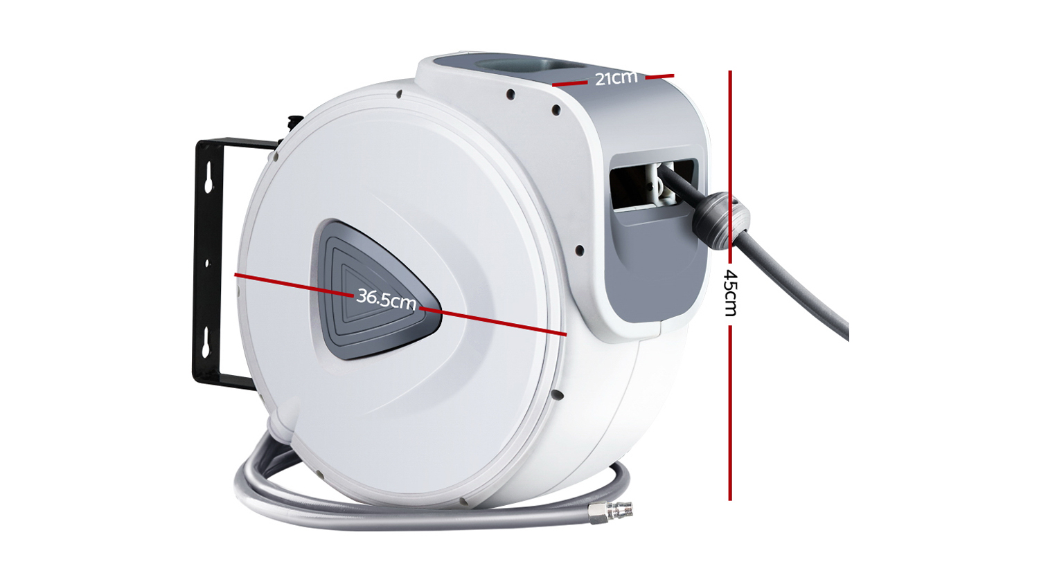 A great addition to your home or workshop, the Giantz Retractable Air Hose Reel keeps your hose neat and accessible. This accessory features a 20m, UV-resistant PVC hose with a premium stainless steel BSPT AU quick-connect fittings. For ease of use, it also utilises various functions, such as a self-layering mechanism, 180° swivel, an incremental feed lock, auto rewind, and a rear leader hose holster.