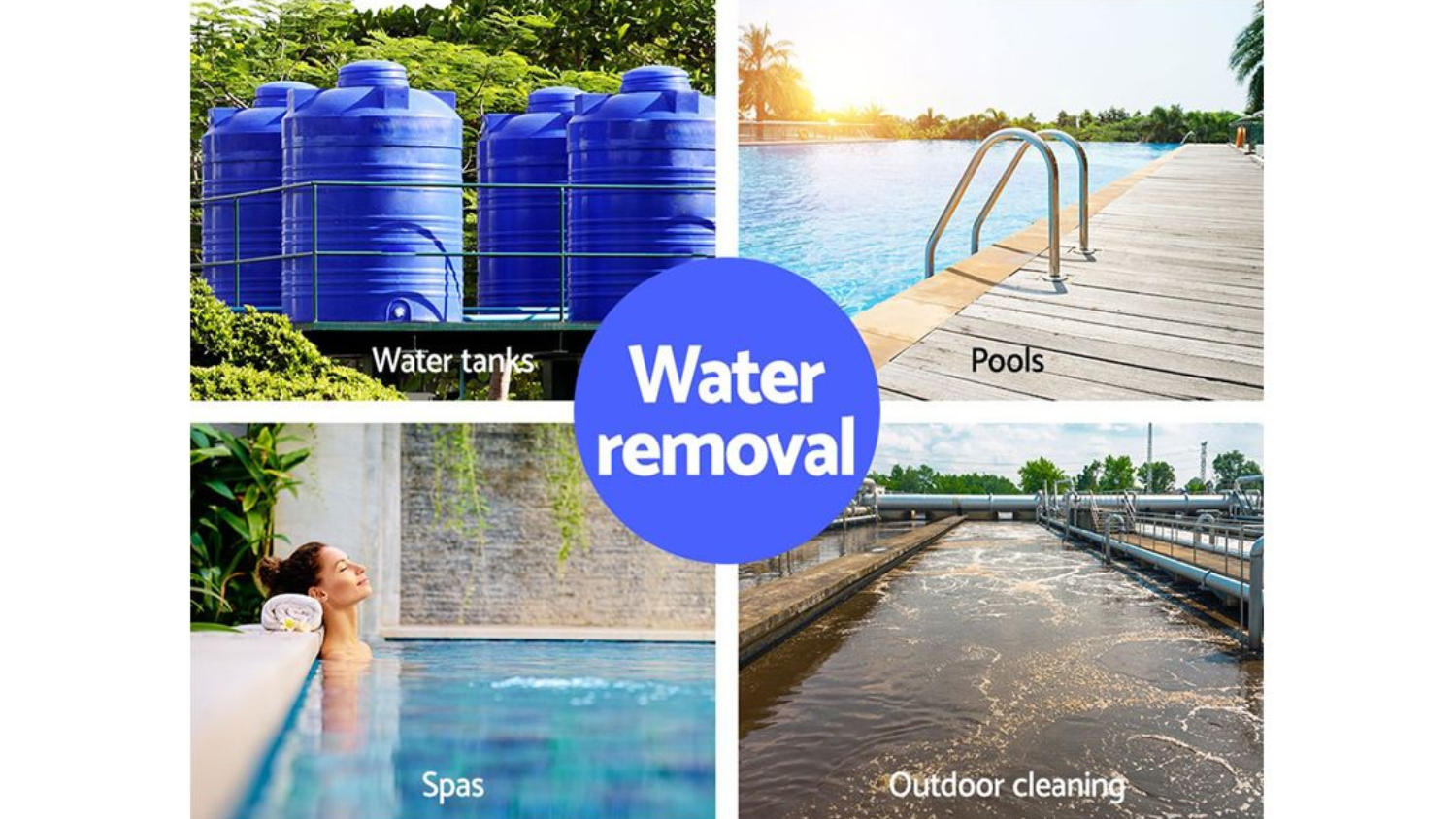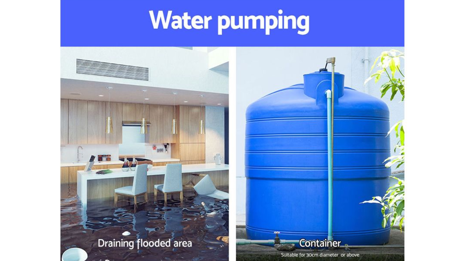 Efficient and essential, the Giantz Submersible Water Pump 1800W is the perfect solution for draining flooded areas, emptying pools, water tanks, and spas. It is equipped with a fully submersible design (maximum depth of 8m) and highly efficient 1800W motor that can create a maximum head of 12.5m and quickly clears the water at a class-leading rate of 24,000litres/hr. Moreover, it has a multi-outlet fitting to suit up to three different pipe sizes, made from durable stainless steel, and sealed water tight. For added safety, it features a thermal overload protection to prevent damage and automatically turns off when critical operating temperature is breached.