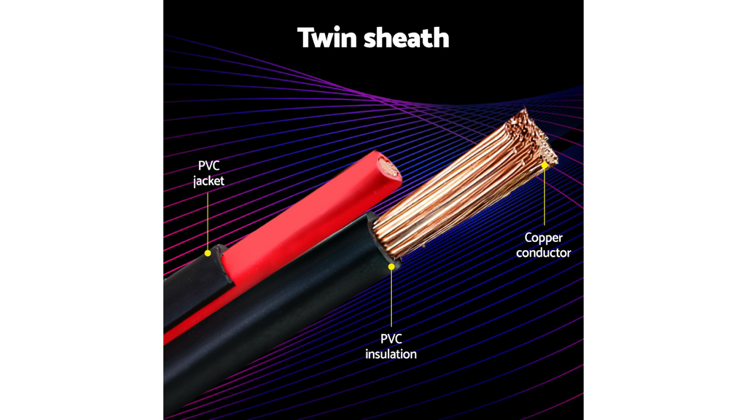 Ensure seamless electrical connections with Giantz Twin Core Dual Sheath Electrical Cable 4mm x 10m. Made from reinforced PVC material, this cable offers durability and resistance to wear and tear. It features an oxygen-free copper core conductor, PVC insulation and a PVC outer jacket, protecting the wires and ensuring excellent conductivity to minimise signal loss.