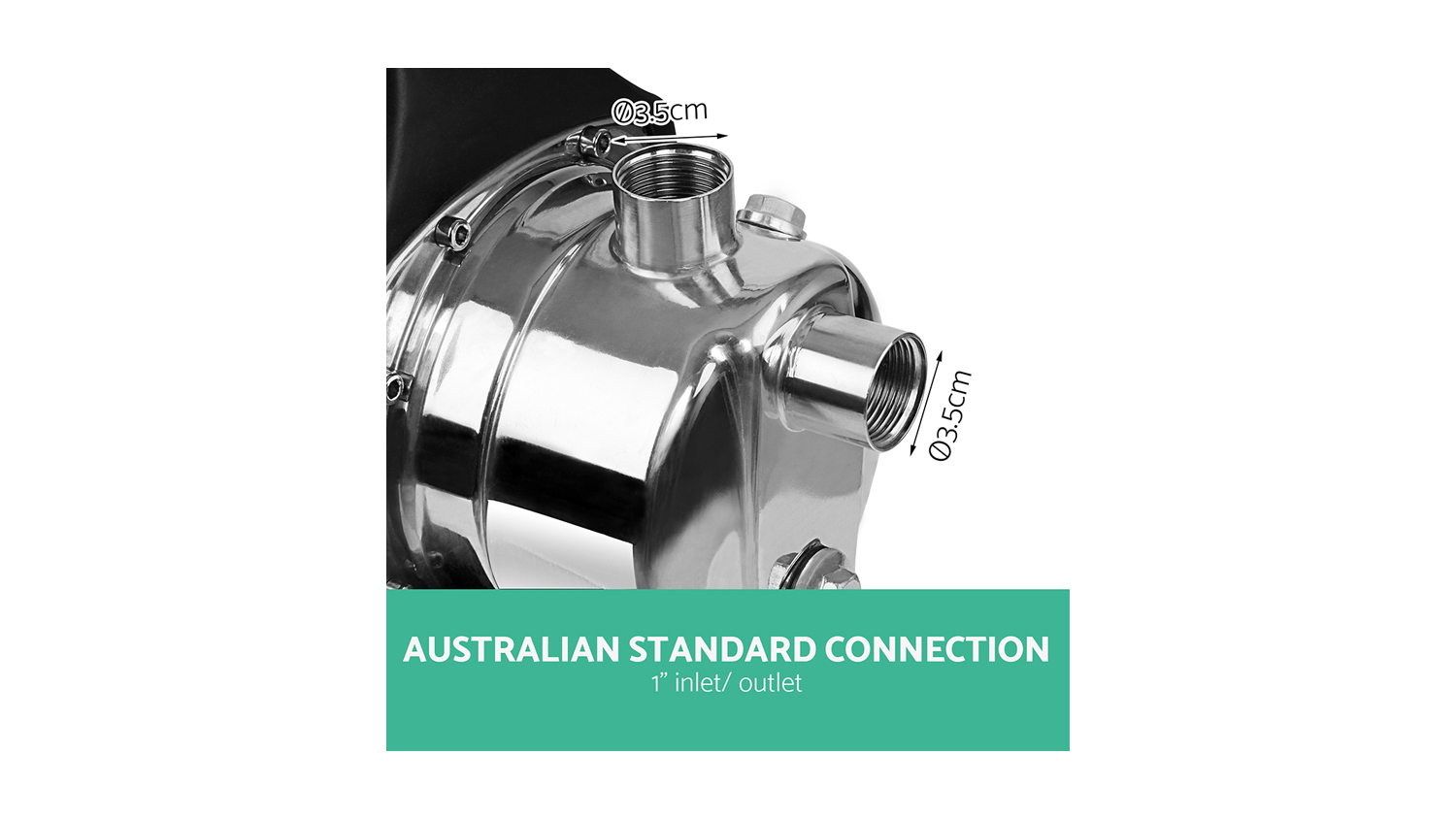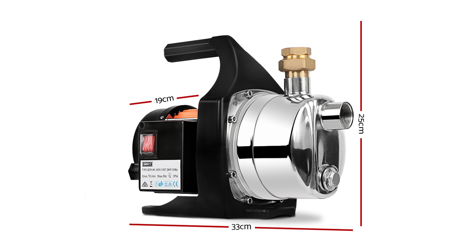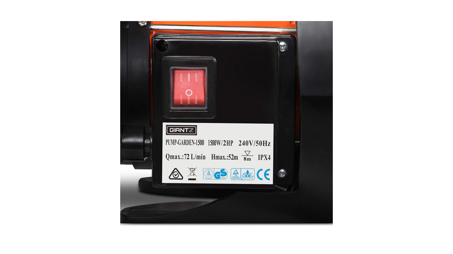 With the Giantz Water Pump High Pressure 1500W, you can provide optimum water flow for your home and garden. Powerful and reliable, this pressurised pump is masterfully built to save your time and energy. It also features an IP44 protection, stainless steel body construction, built-in thermal protection, an efficient cooling system, and more. Additionally, it offers a maximum flow of 72L per minute, a maximum head of 52m, and a maintenance-free design for your convenience.